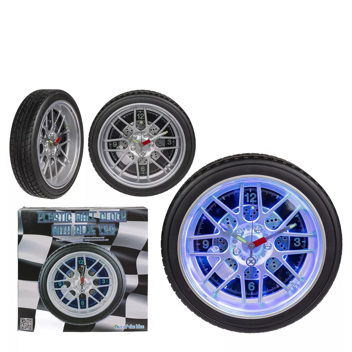 Ρολόι Τοίχου Ρόδα Αυτοκινήτου Με 16 LED Πλαστικό Φ35cm