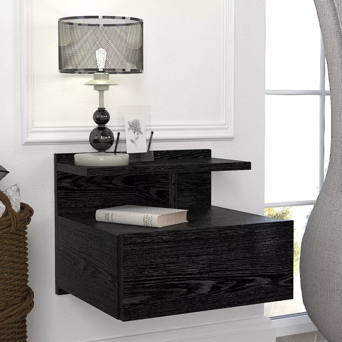 Κομοδίνο επιτοίχιο Mislina Megapap χρώμα sencron black 40x33,2x32εκ.
