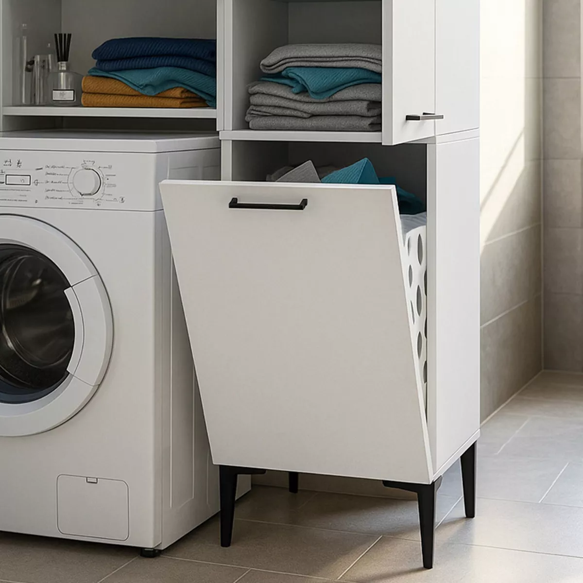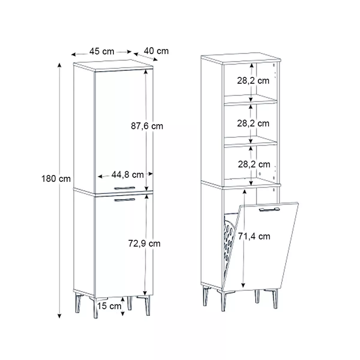Ντουλάπι με καλάθι απλύτων Singa Megapap χρώμα λευκό 45x40x180εκ.