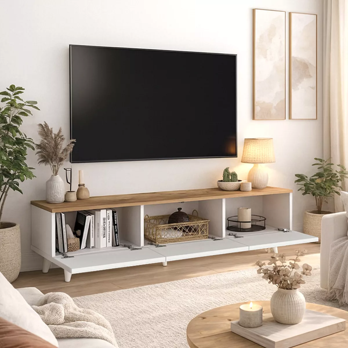 Έπιπλο τηλεόρασης Bono Megapap χρώμα λευκό - sepet oak 150x32,3x42,1εκ.