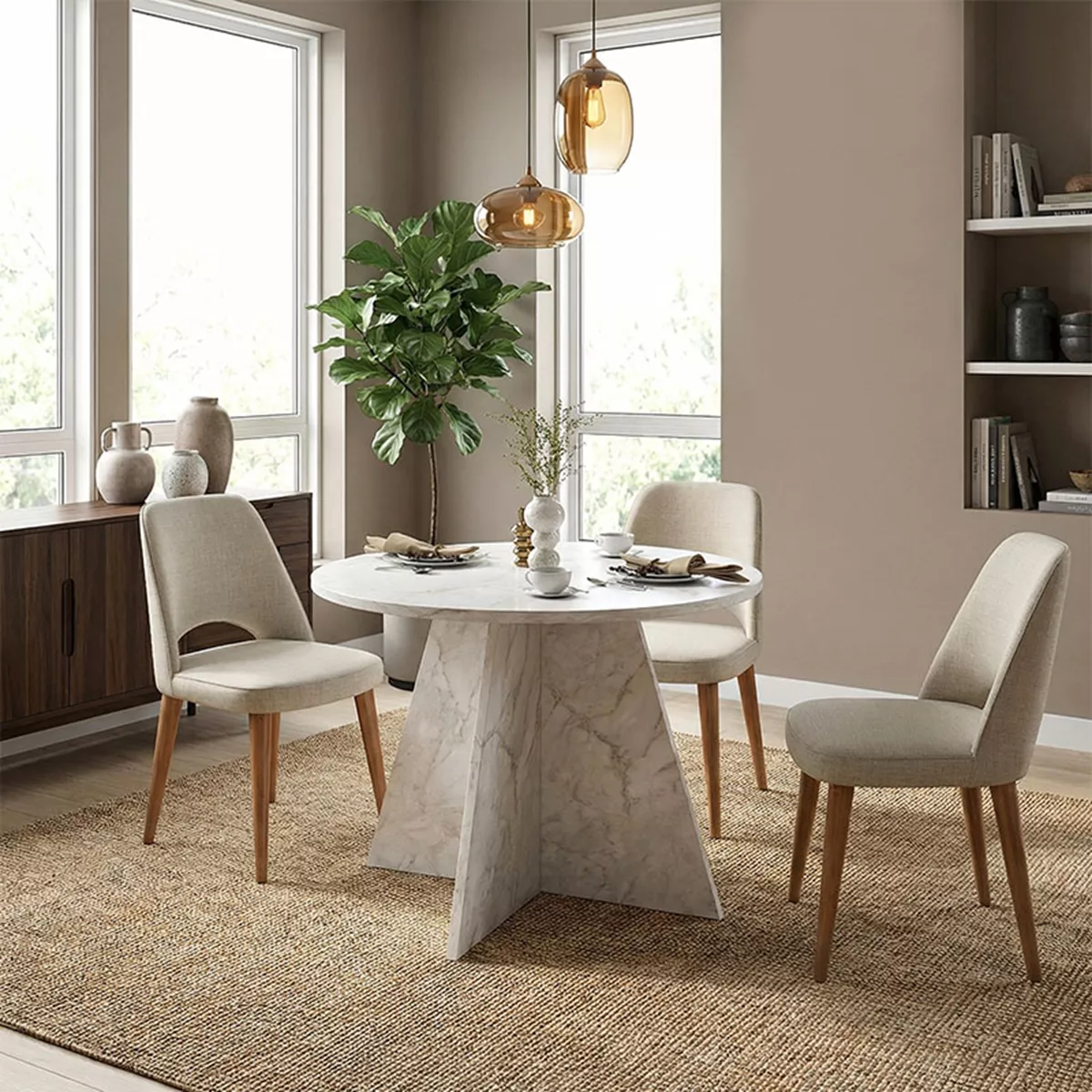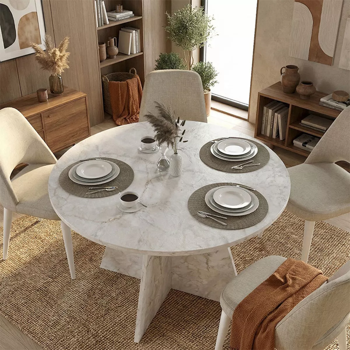 Τραπέζι Tailor Megapap χρώμα λευκό εφέ μαρμάρου Ø100x75,7εκ.