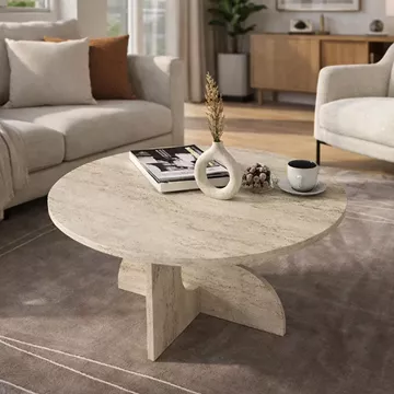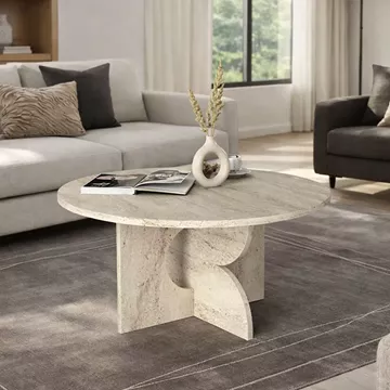 Τραπεζάκι σαλονιού Mara Megapap χρώμα travertine Ø75x36,8εκ.