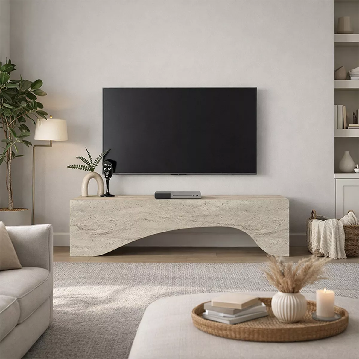 Έπιπλο τηλεόρασης Mara Megapap με LED χρώμα travertine 150x31,4x40εκ.
