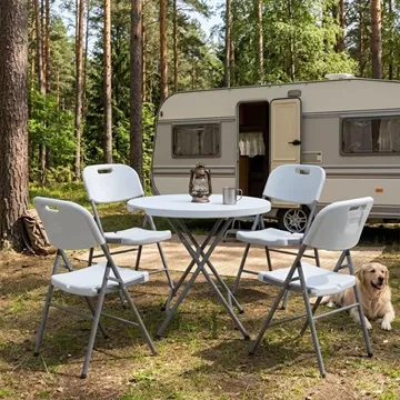 Τραπέζι catering - συνεδρίου Capri Megapap πτυσσόμενο - στρογγυλό μονοκόμματη επιφάνεια χρώμα λευκό του πάγου Ø80x74εκ.
