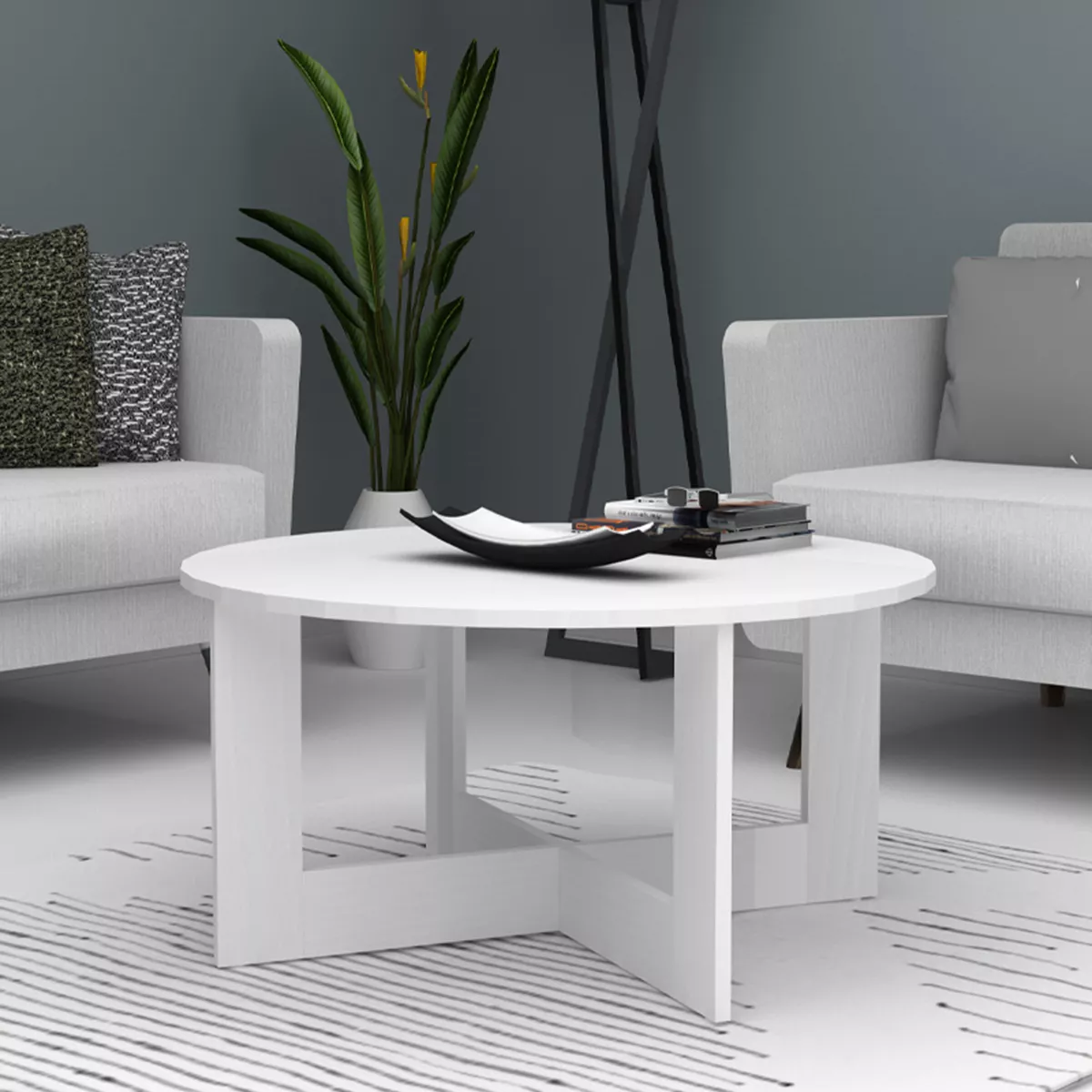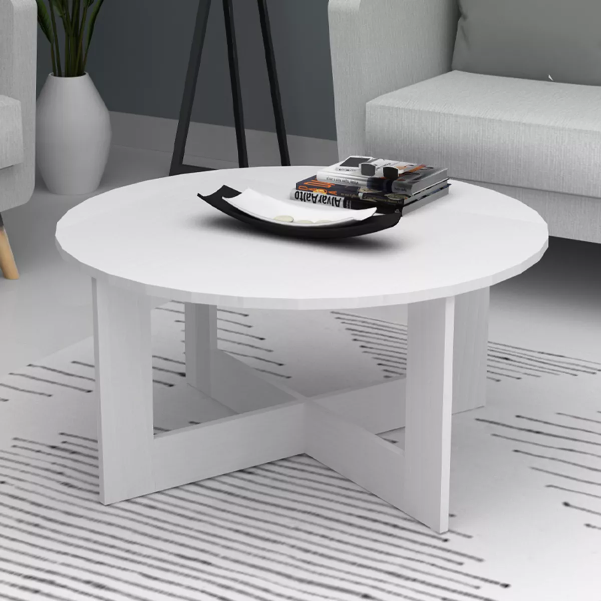 Τραπεζάκι σαλονιού Kati Megapap χρώμα λευκό Ø80x42εκ.