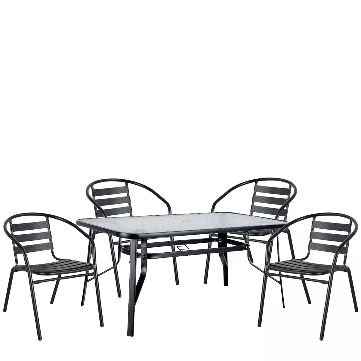Σετ Τραπεζαρία Κήπου ArteLibre SUN Μαύρο Μέταλλο/Γυαλί Με 4 Πολυθρόνες 14990482