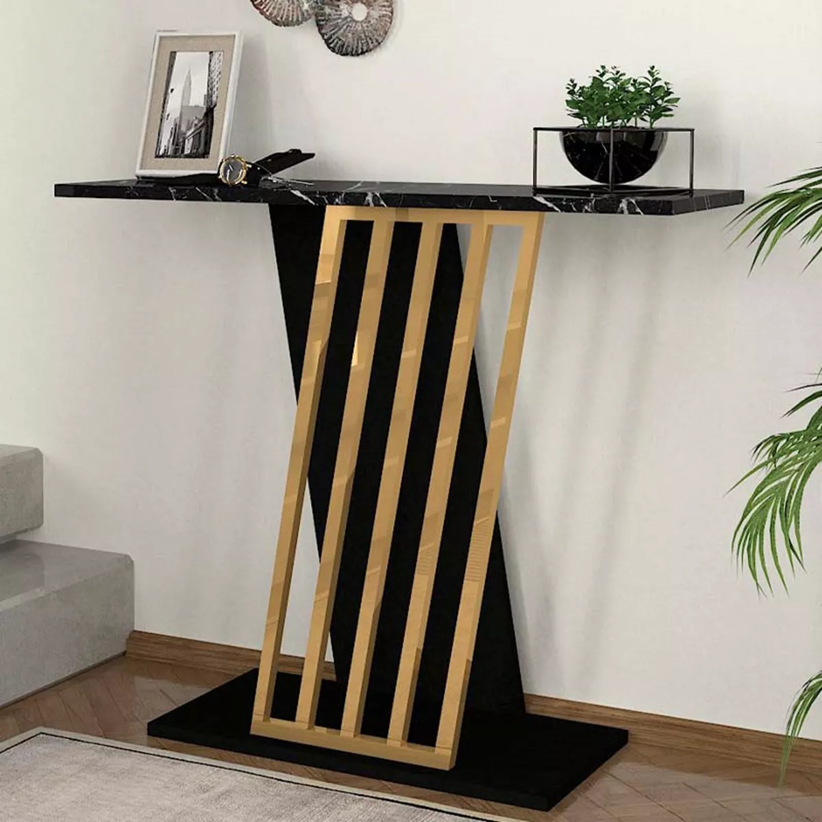 Κονσόλα μελαμίνης Gravity Megapap χρώμα μαύρο εφέ μαρμάρου - χρυσό 90x29,6x76,8εκ.
