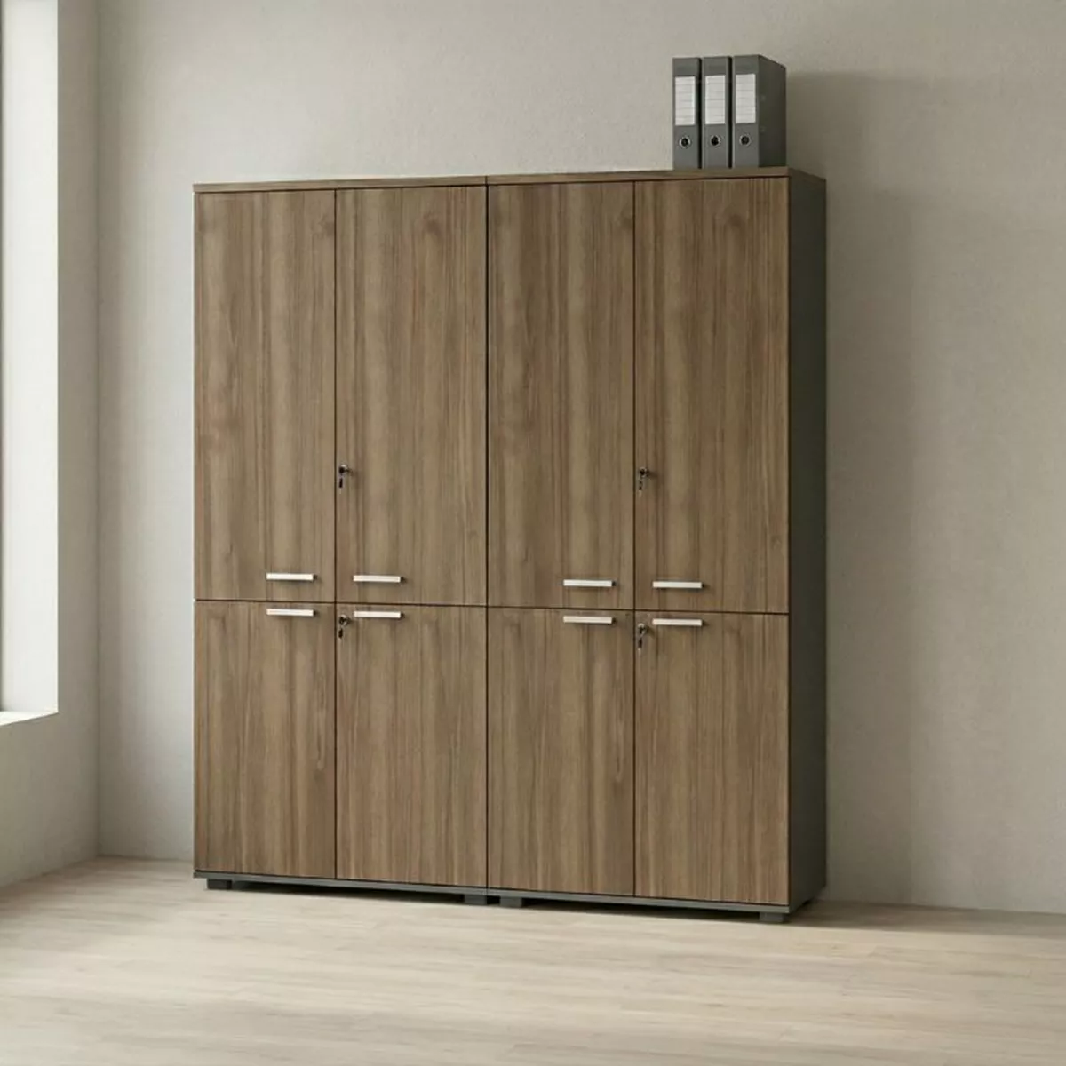 Ντουλάπα γραφείου με κλειδαριά επαγγελματική Venturo Megapap χρώμα ανθρακί - καρυδί 160x40x200εκ.