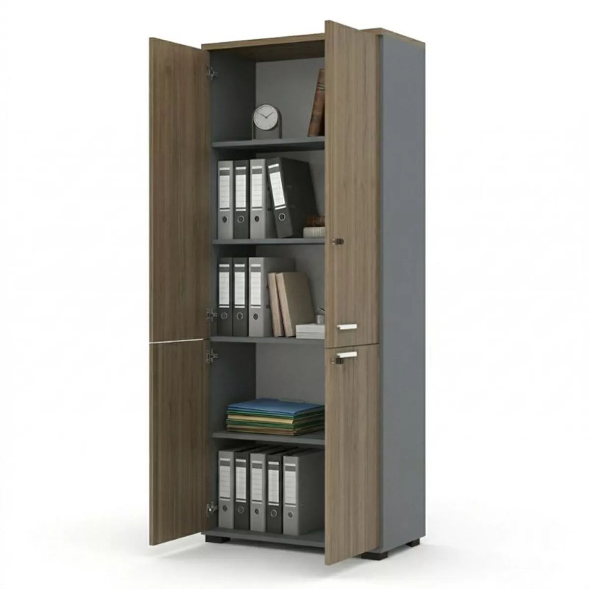 Ντουλάπα γραφείου με κλειδαριά επαγγελματική Venturo Megapap χρώμα ανθρακί - καρυδί 80x40x200εκ.