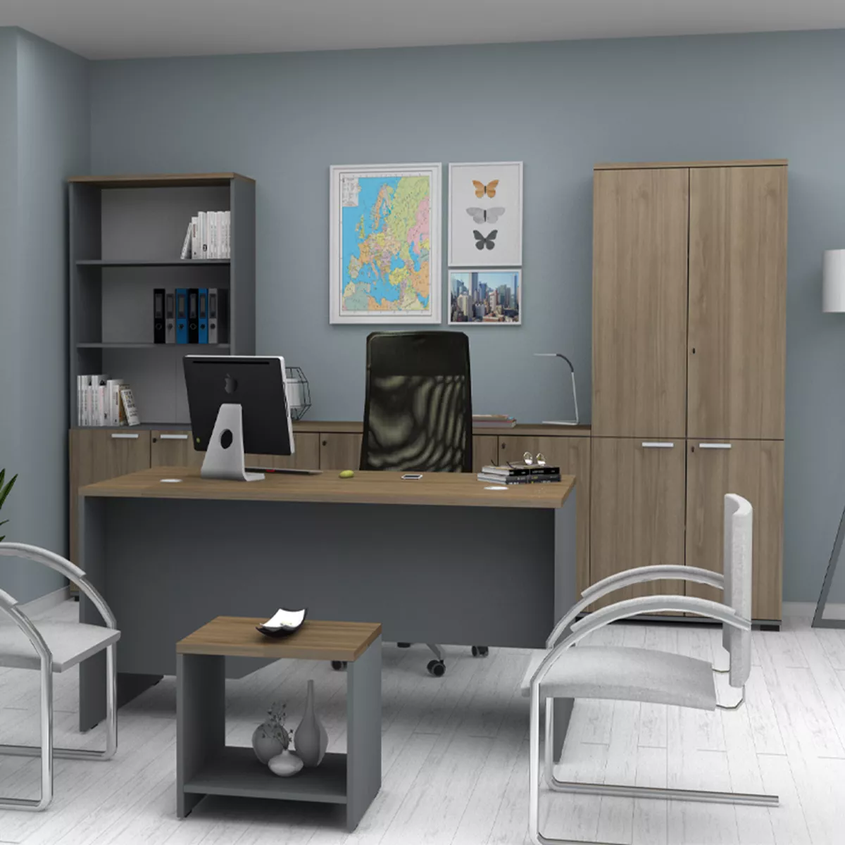 Γραφείο επαγγελματικό Venturo Megapap χρώμα ανθρακί - καρυδί 150x80x75εκ.
