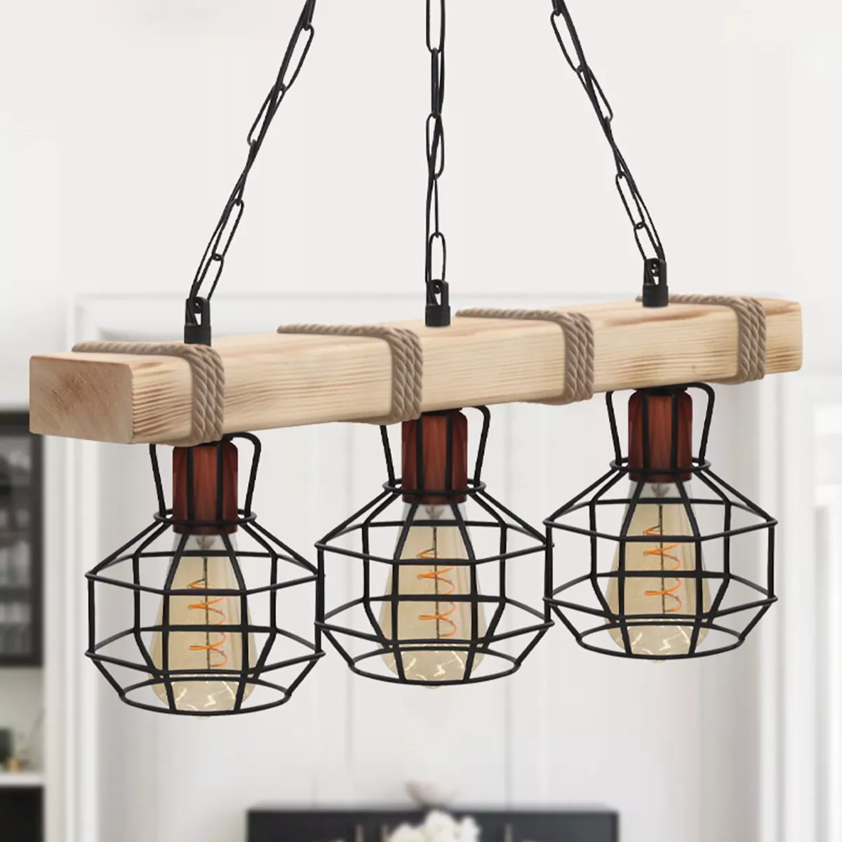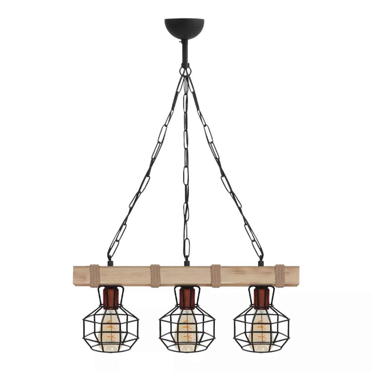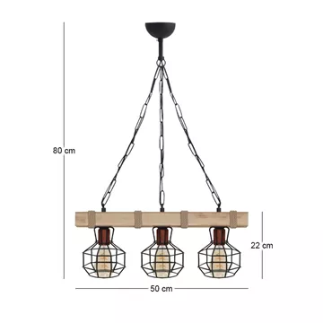 Φωτιστικό οροφής Lumenia Megapap E27 ξύλινο - μεταλλικό τρίφωτο χρώμα φυσικό - μαύρο 50x14x80εκ.