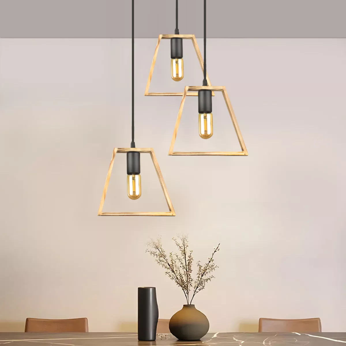 Φωτιστικό οροφής Tekli Megapap E27 ξύλινο τρίφωτο χρώμα φυσικό 40x30x90εκ.