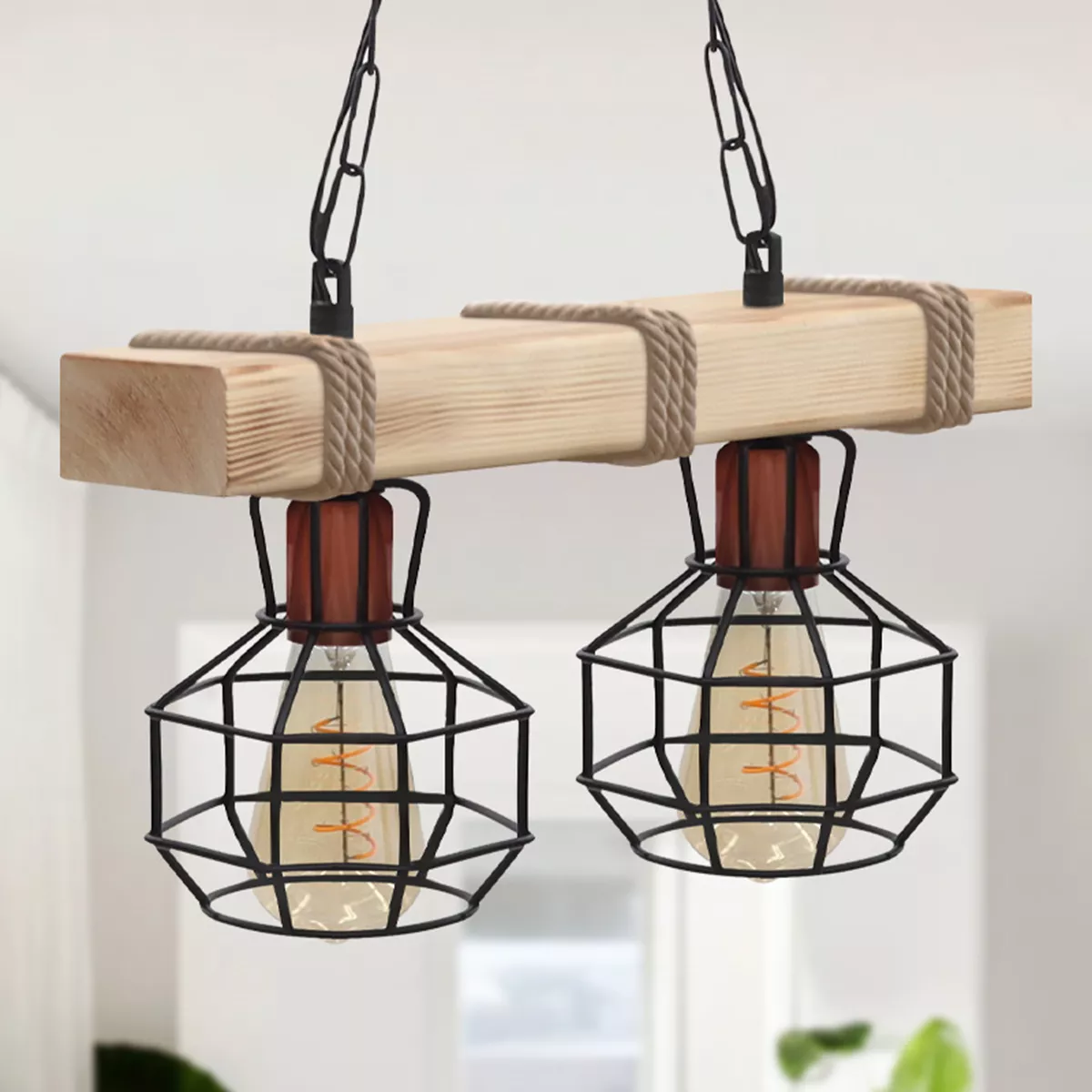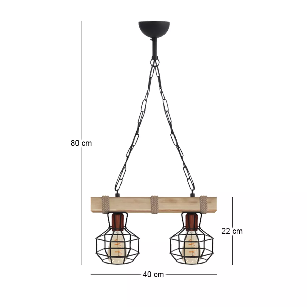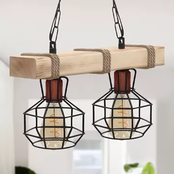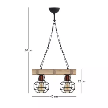 Φωτιστικό οροφής Lumenia Megapap E27 ξύλινο - μεταλλικό δίφωτο χρώμα φυσικό - μαύρο 40x14x80εκ.
