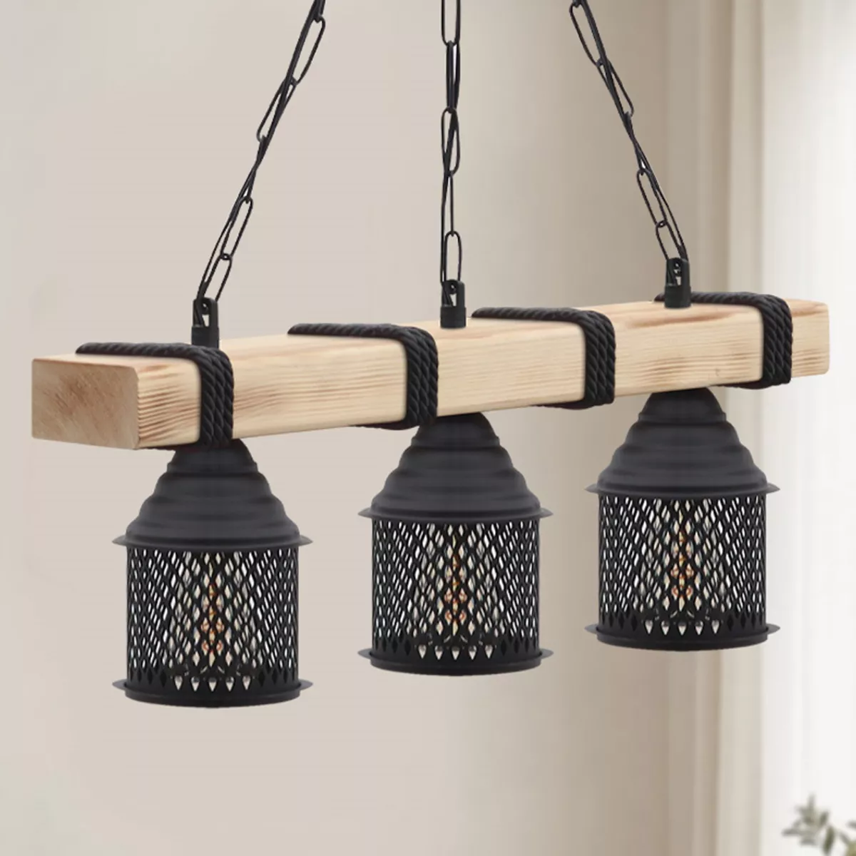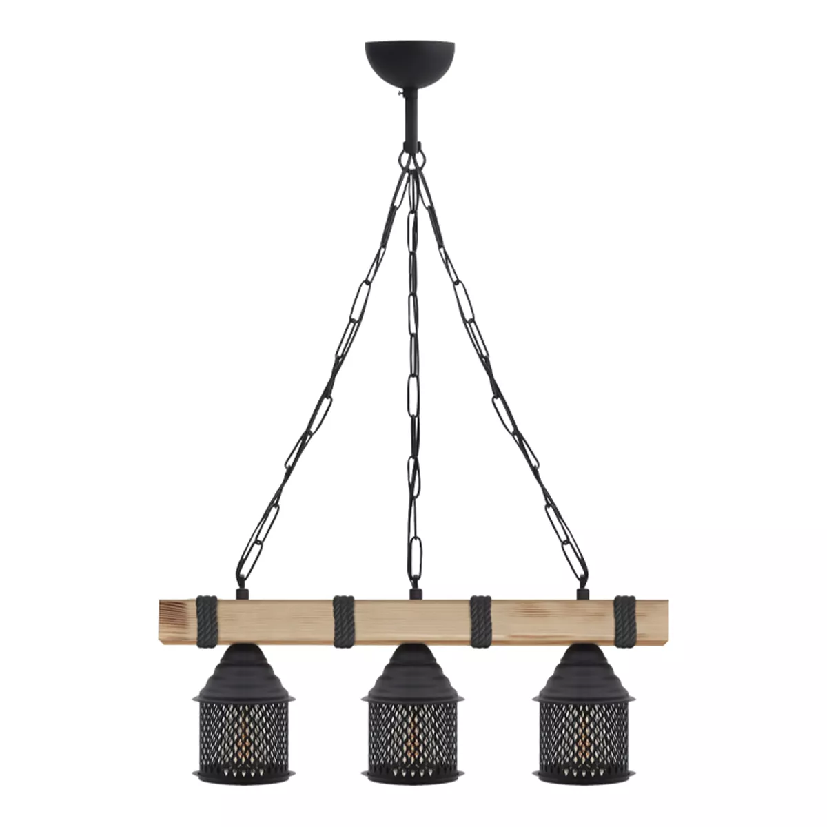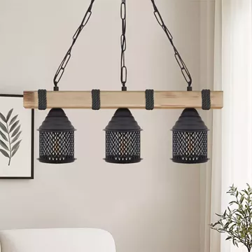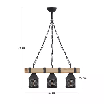 Φωτιστικό οροφής Elora Megapap E27 ξύλινο - μεταλλικό τρίφωτο χρώμα φυσικό - μαύρο 50x13x75εκ.