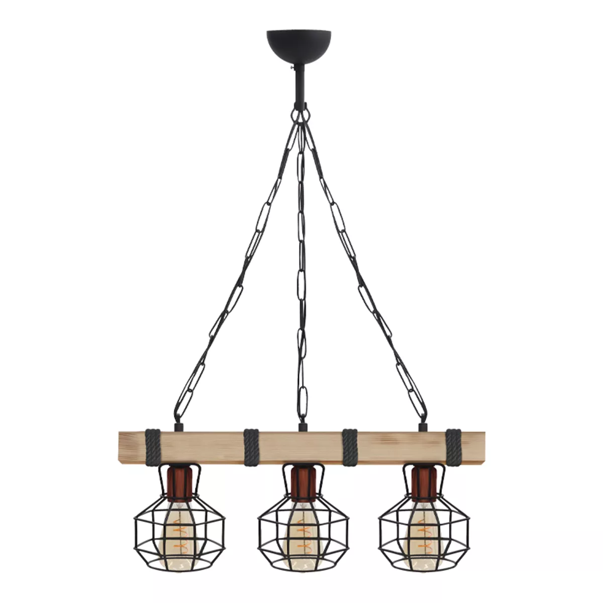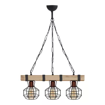 Φωτιστικό οροφής Lumenia Megapap E27 ξύλινο - μεταλλικό τρίφωτο χρώμα φυσικό - μαύρο 50x14x80εκ.