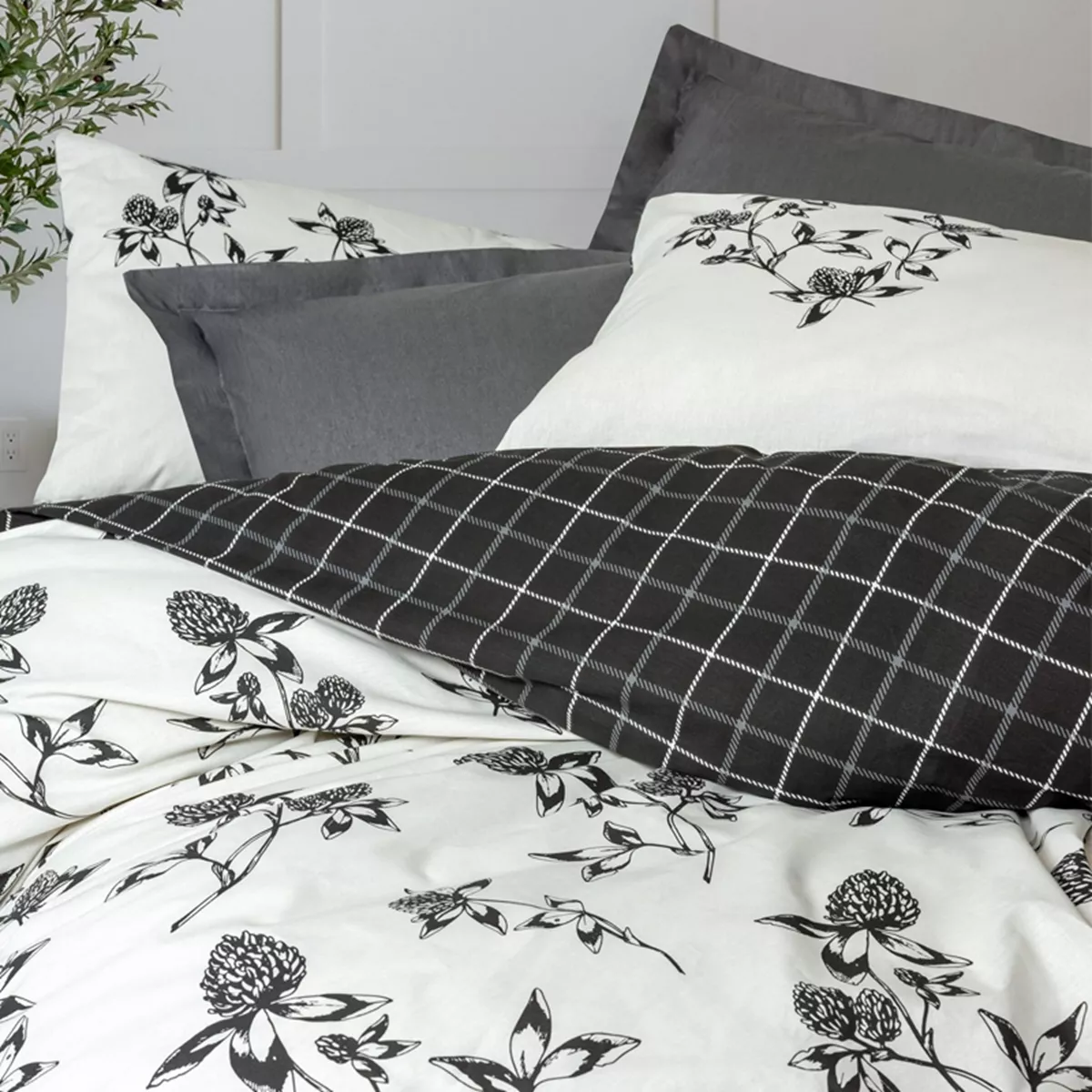 Σετ παπλωματοθήκη Ohia Cotton Box 4 τμχ Διπλή (200x220) χρώμα ανθρακί