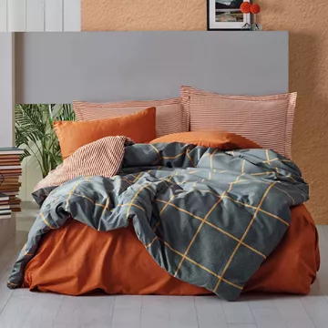 Σετ παπλωματοθήκη Stark Cotton Box 4 τμχ Διπλή (200x220) χρώμα cinnamon - μπλε