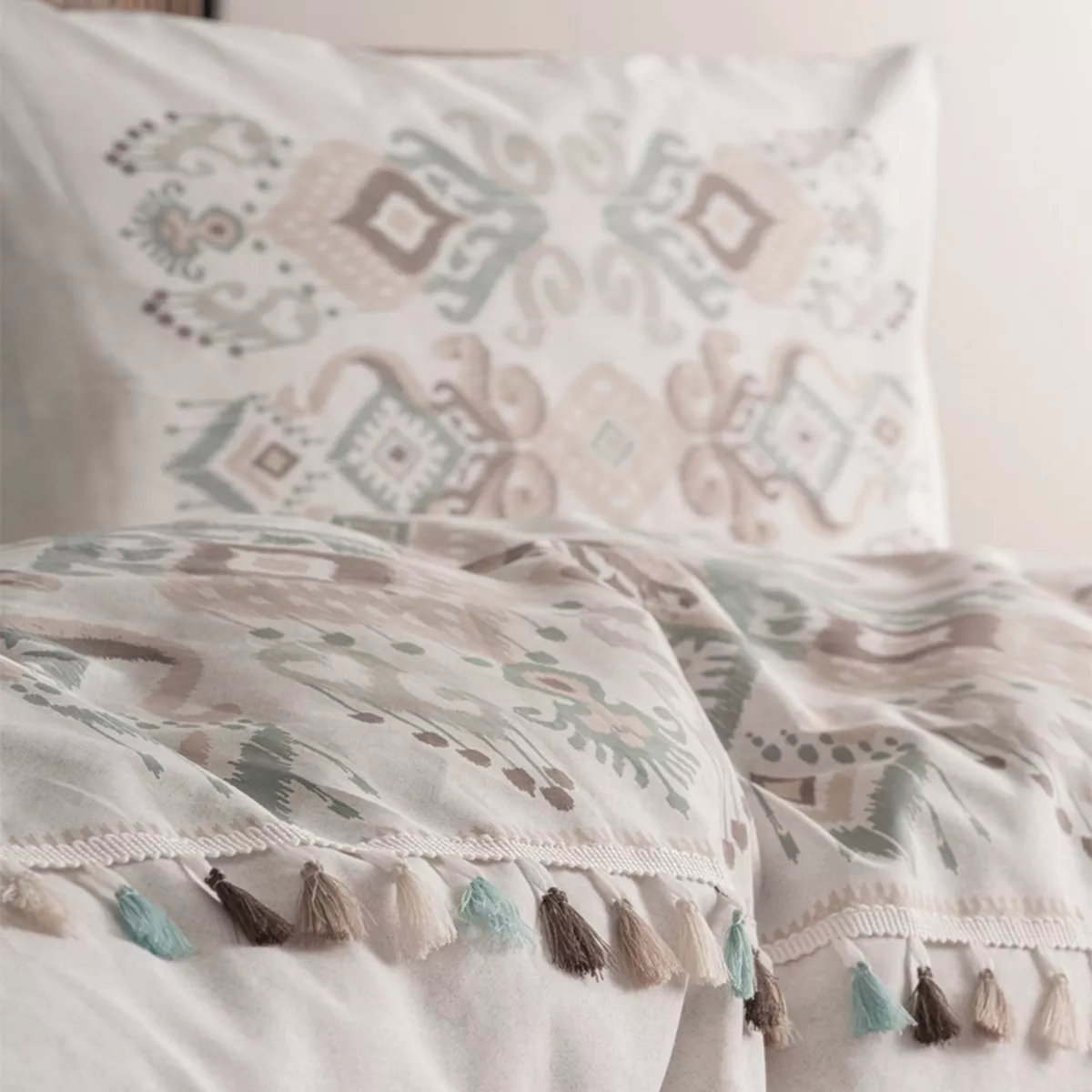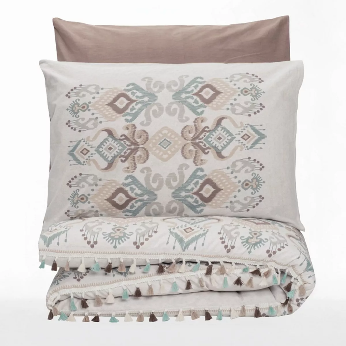 Σετ παπλωματοθήκη Asilo Cotton Box 4 τμχ Διπλή (200x220) χρώμα καφέ - λευκό