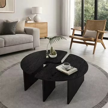 Τραπεζάκι σαλονιού σετ 2 τμχ Dorena Megapap χρώμα sencron black Ø90x41,7εκ.