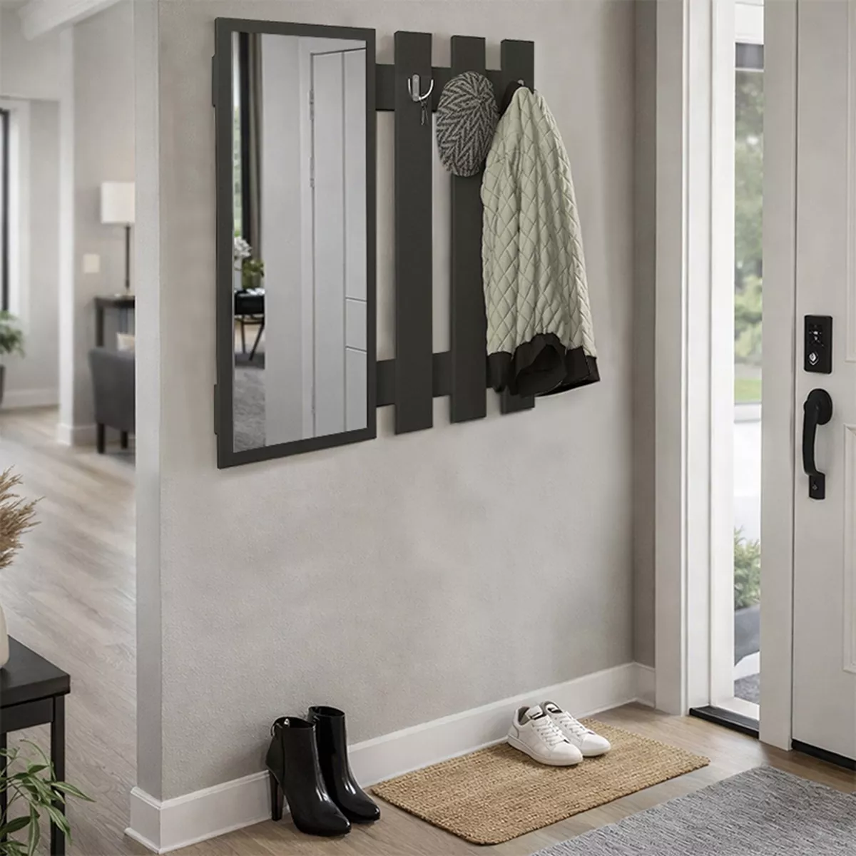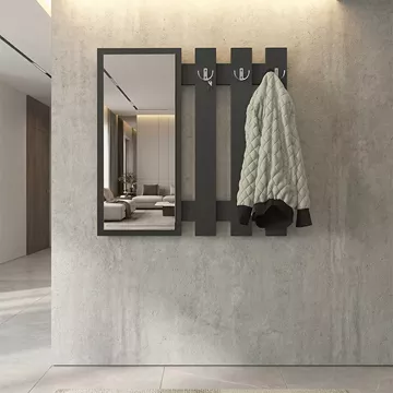 Κρεμάστρα τοίχου με καθρέπτη Folin Megapap χρώμα ανθρακί 90x4x90εκ.