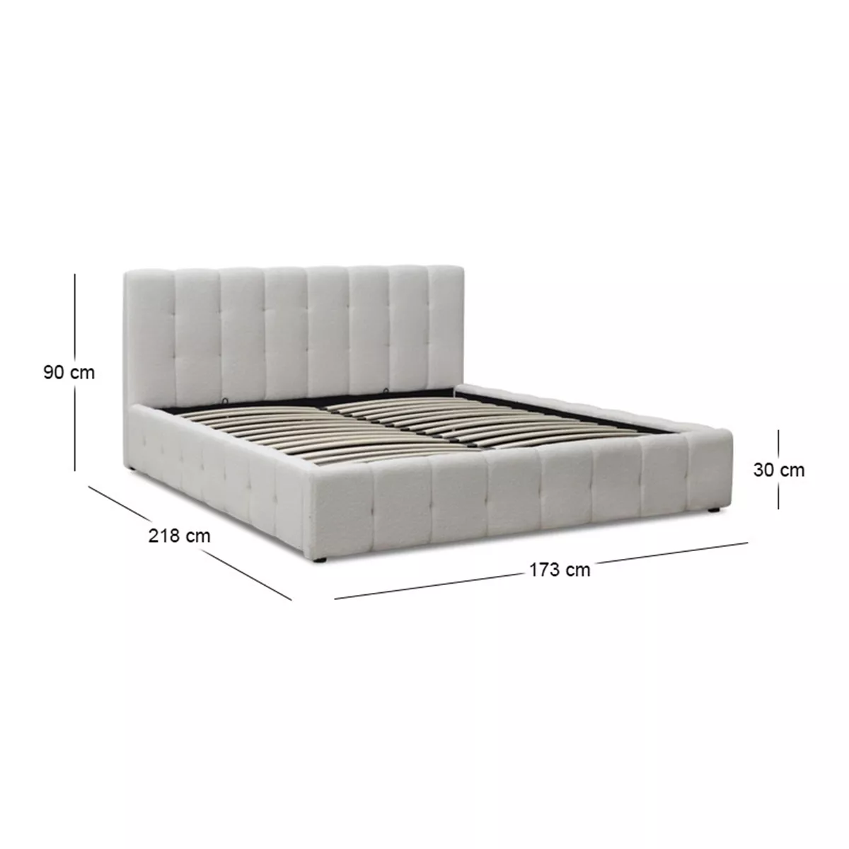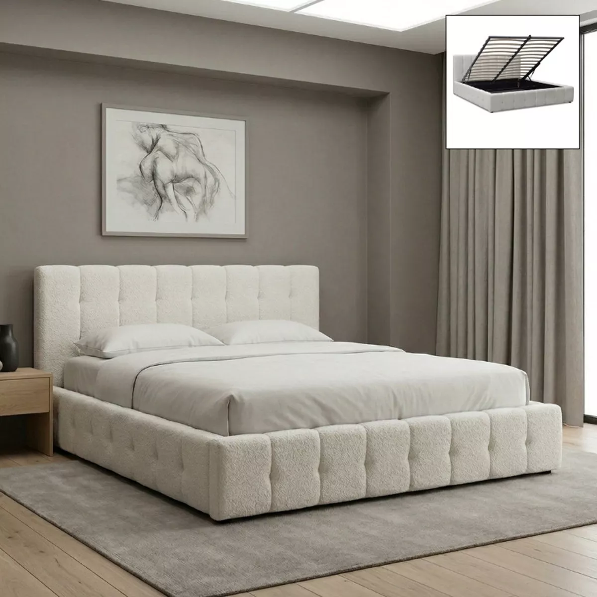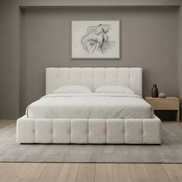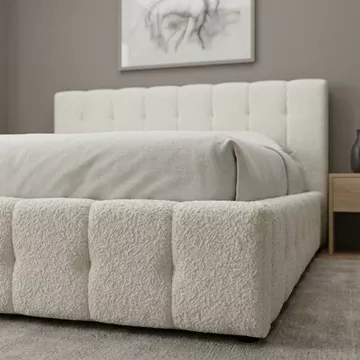 Κρεβάτι Norah Megapap μπουκλέ ύφασμα με αποθηκευτικό χώρο χρώμα ivory 160x200εκ.