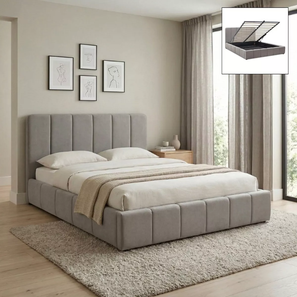 Κρεβάτι Nival Megapap υφασμάτινο με αποθηκευτικό χώρο χρώμα μπεζ 160x200εκ.