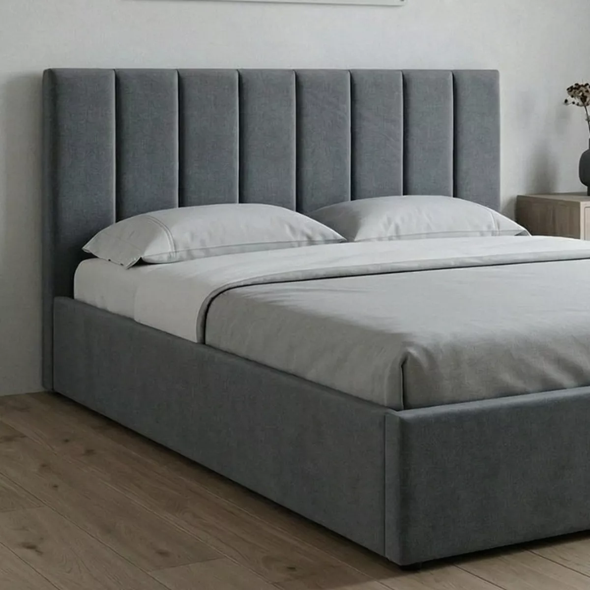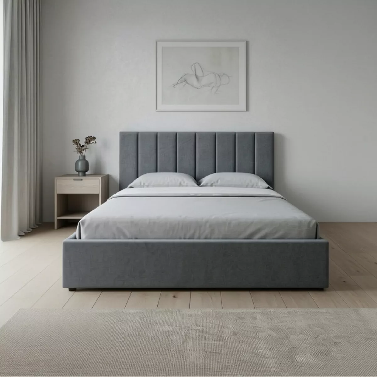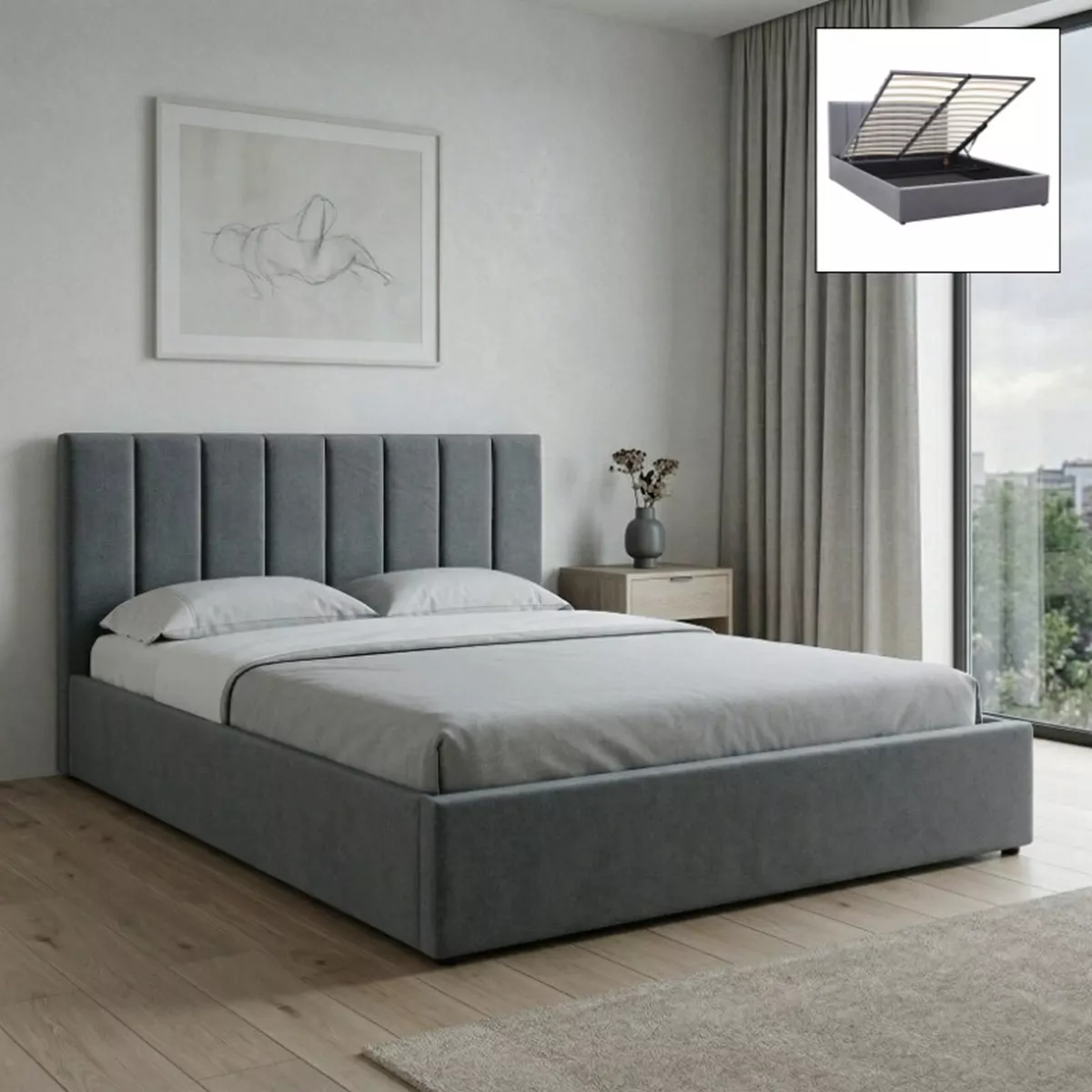 Κρεβάτι Renata Megapap υφασμάτινο με αποθηκευτικό χώρο χρώμα γκρι 150x200εκ.