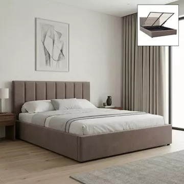 Κρεβάτι Renata Megapap υφασμάτινο με αποθηκευτικό χώρο χρώμα μπεζ 150x200εκ.