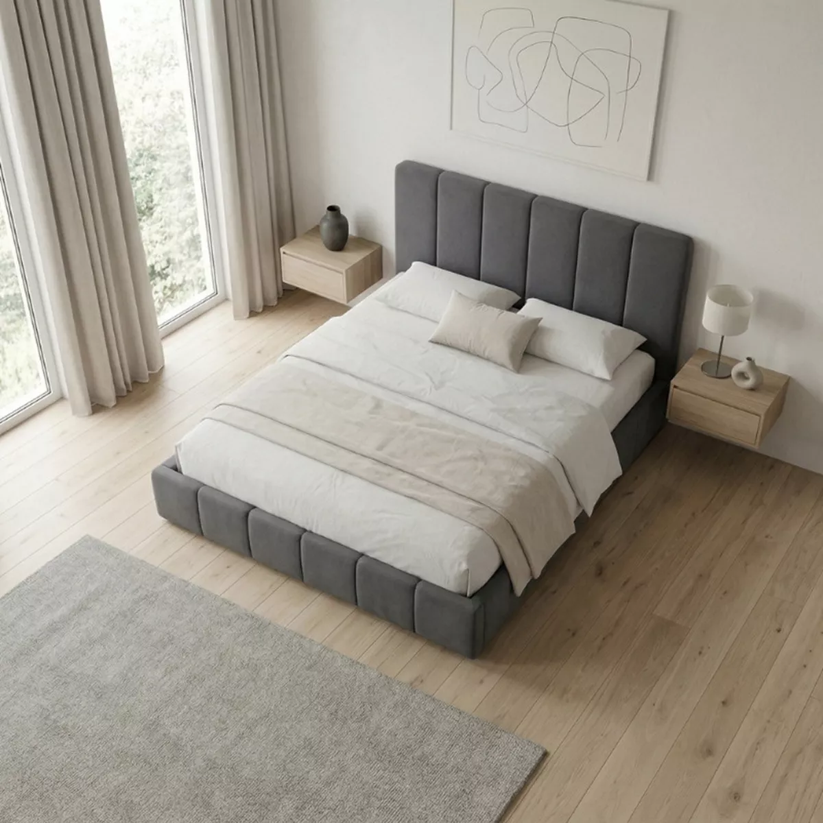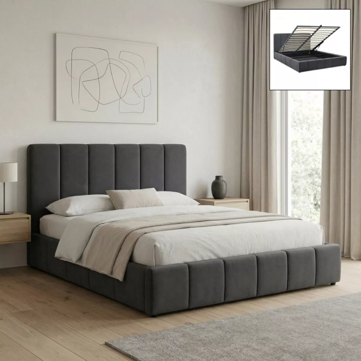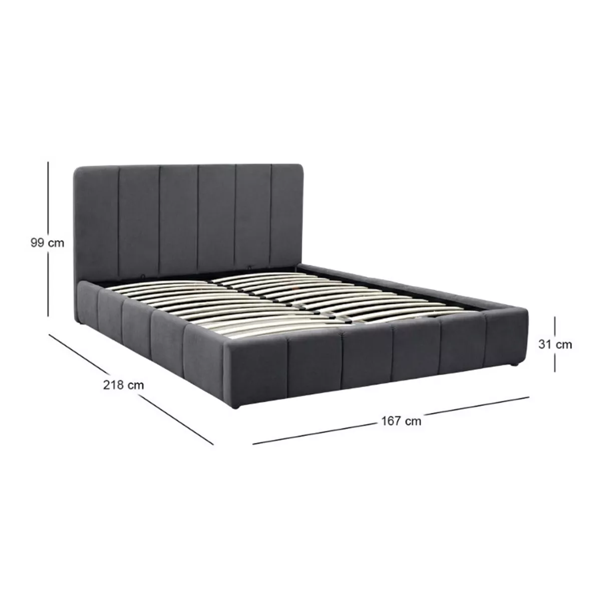 Κρεβάτι Nival Megapap υφασμάτινο με αποθηκευτικό χώρο χρώμα ανθρακί 160x200εκ.