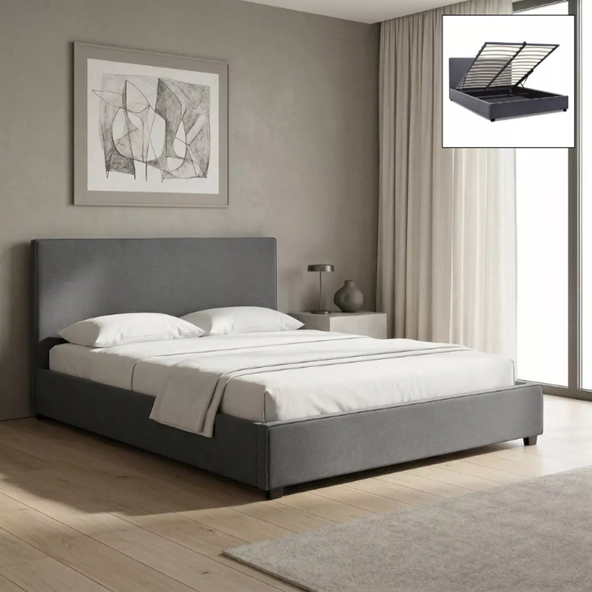 Κρεβάτι Verona Megapap υφασμάτινο με αποθηκευτικό χώρο χρώμα ανθρακί 160x200εκ.