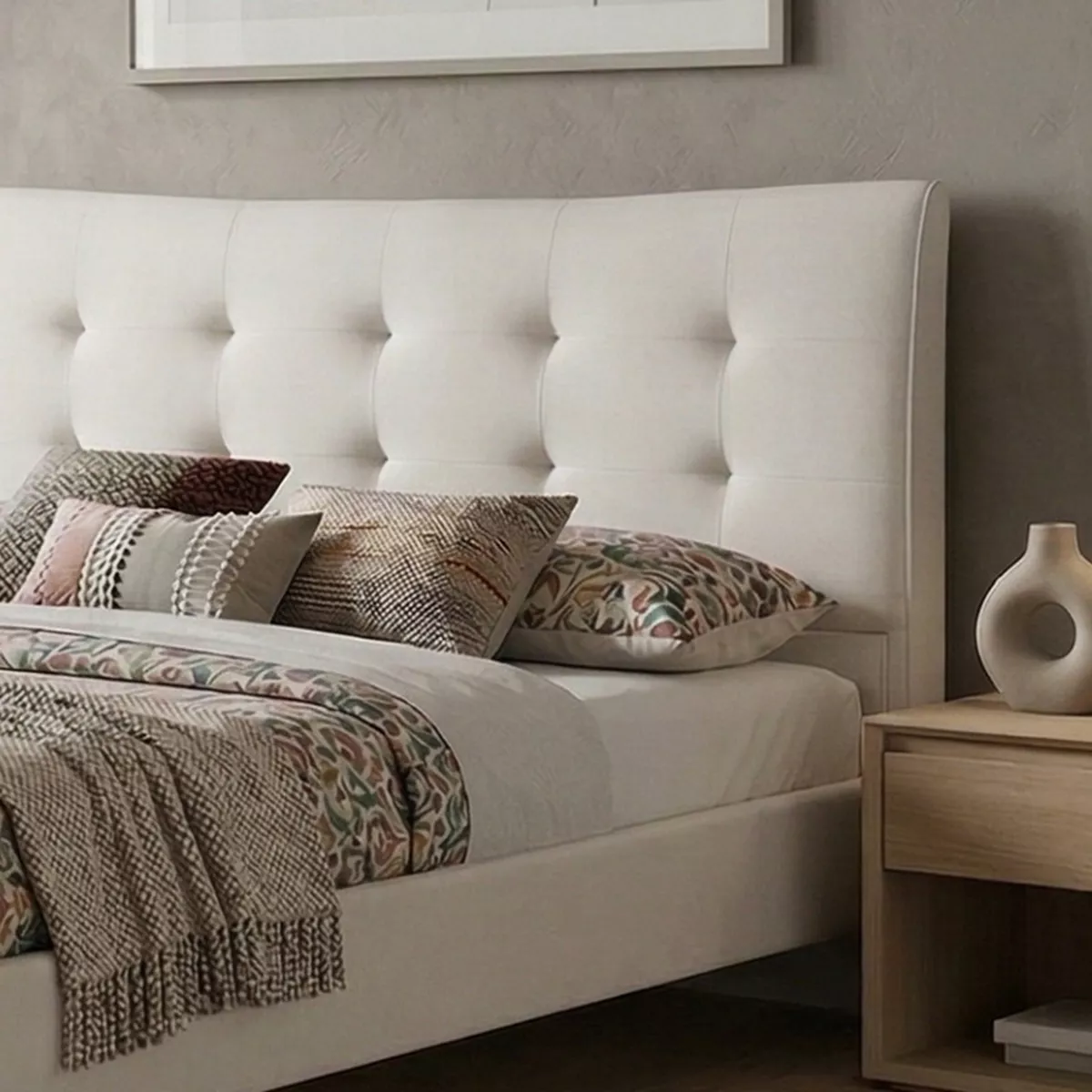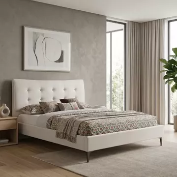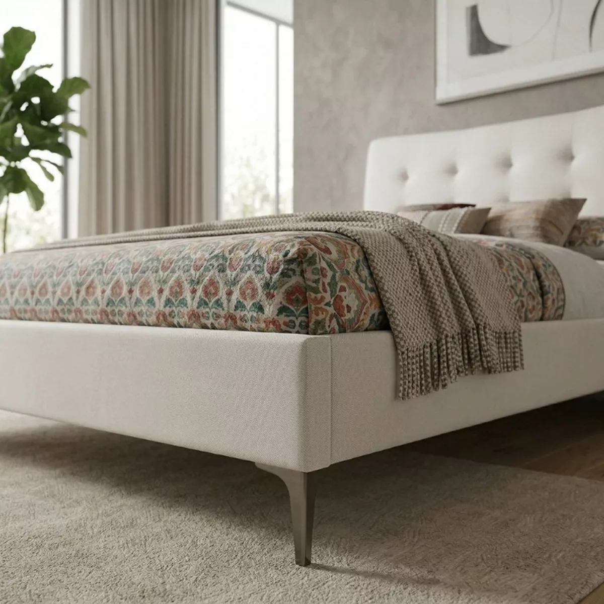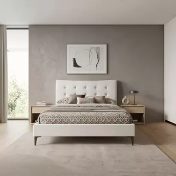 Κρεβάτι Mirel Megapap υφασμάτινο χρώμα ανοιχτό μπεζ 160x200εκ.