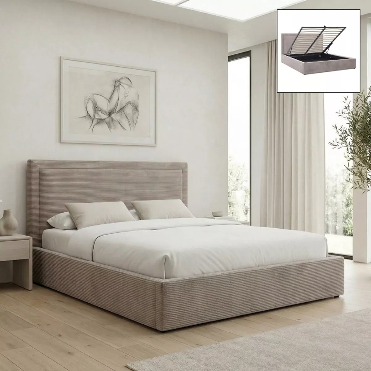 Κρεβάτι Velar Megapap υφασμάτινο με αποθηκευτικό χώρο χρώμα μόκα 160x200εκ.