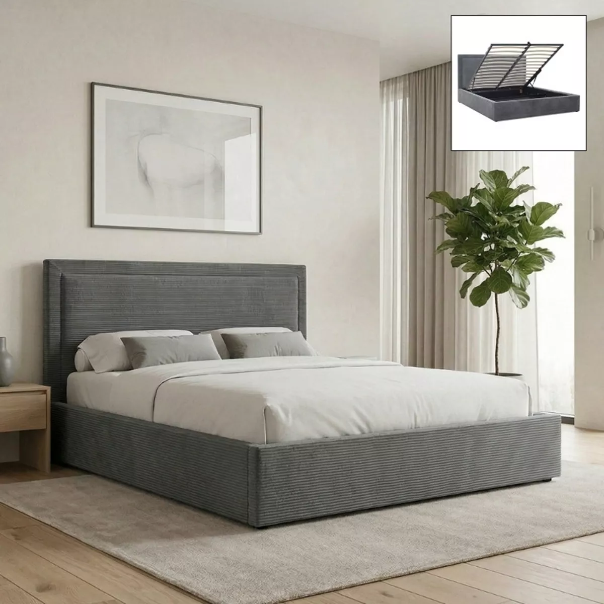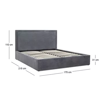 Κρεβάτι Velar Megapap υφασμάτινο με αποθηκευτικό χώρο χρώμα γκρι 160x200εκ.