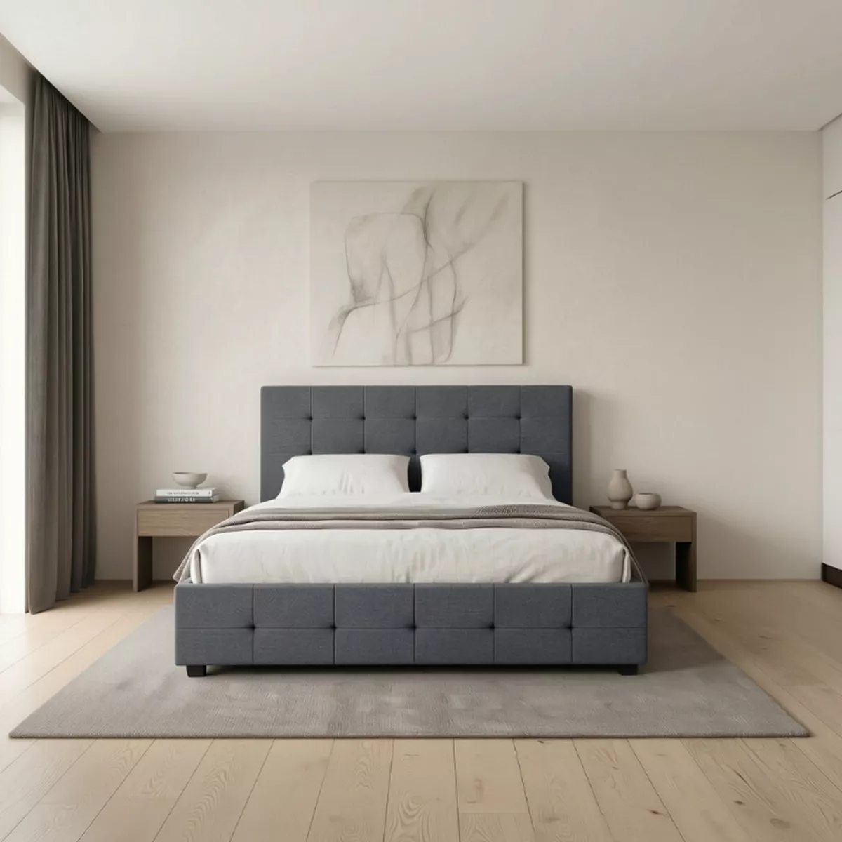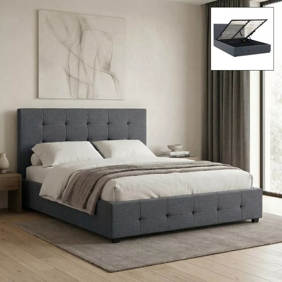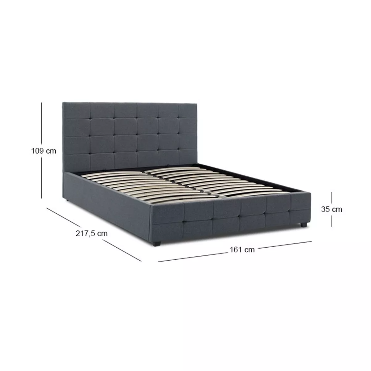 Κρεβάτι Iro Megapap υφασμάτινο με αποθηκευτικό χώρο χρώμα ανθρακί 150x200εκ.