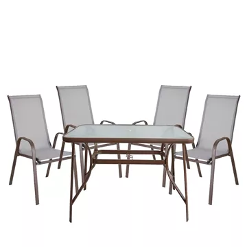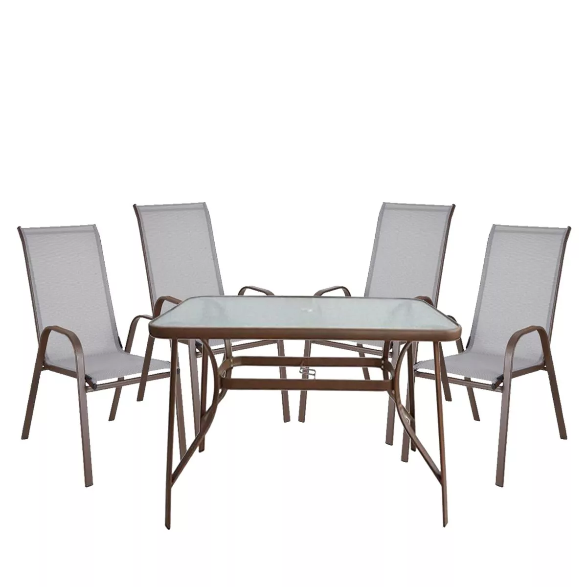 Σετ Τραπεζαρία Κήπου Sun Μέταλλο Γκρι/Καφέ Με 4 Πολυθρόνες