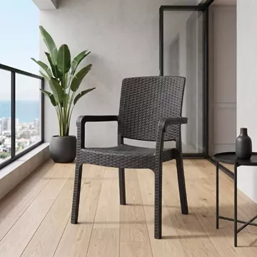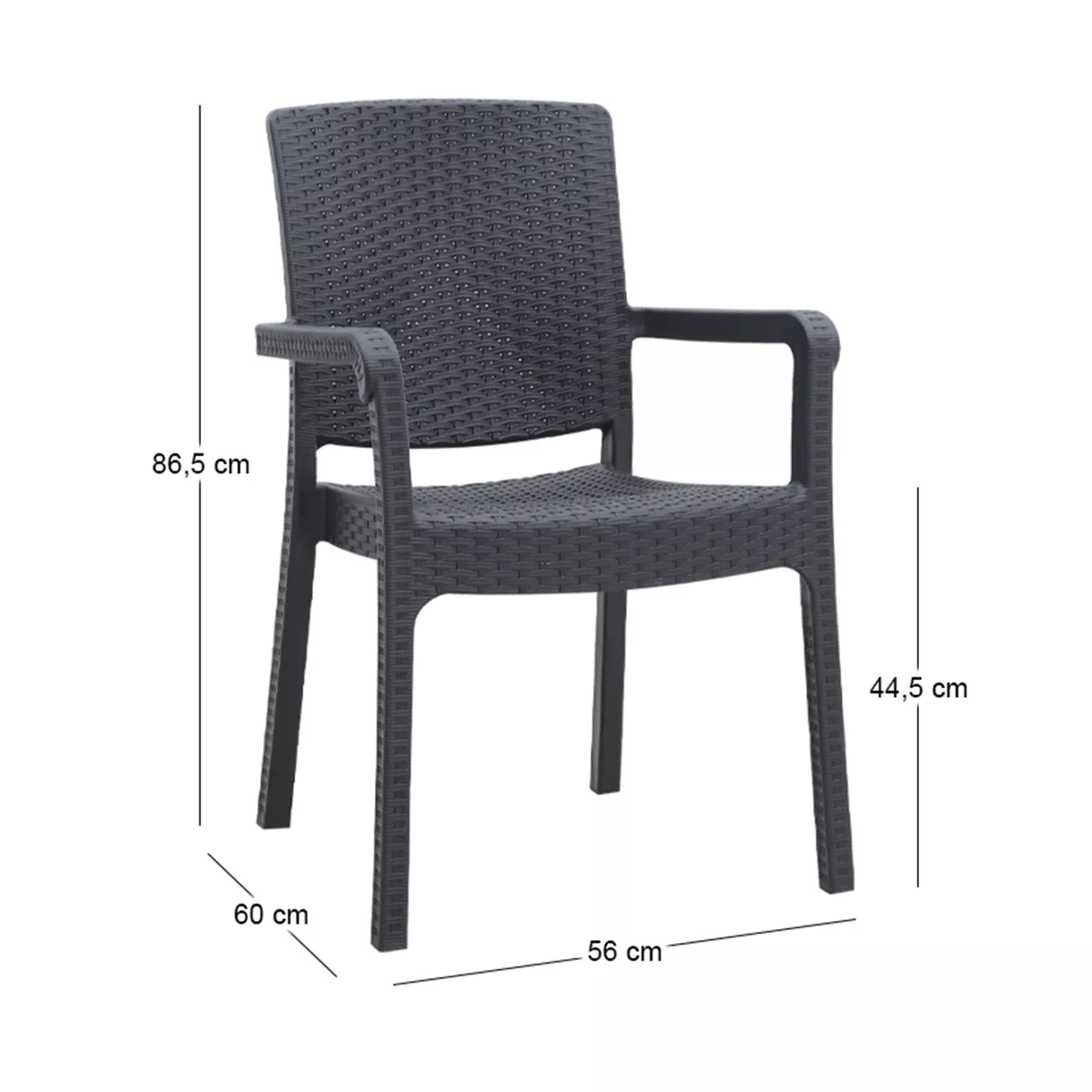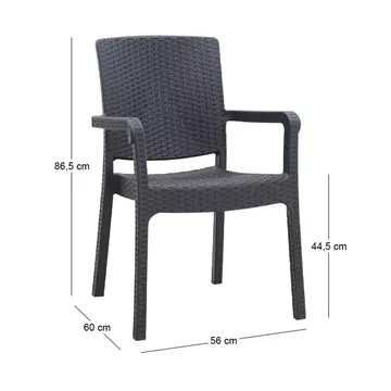 Πολυθρόνα κήπου πολυπροπυλενίου με πλέξη ραττάν χρώμα μαύρο 56x60x86,5εκ.
