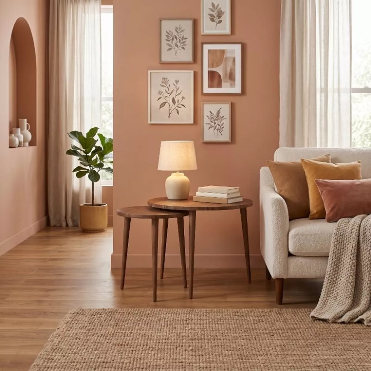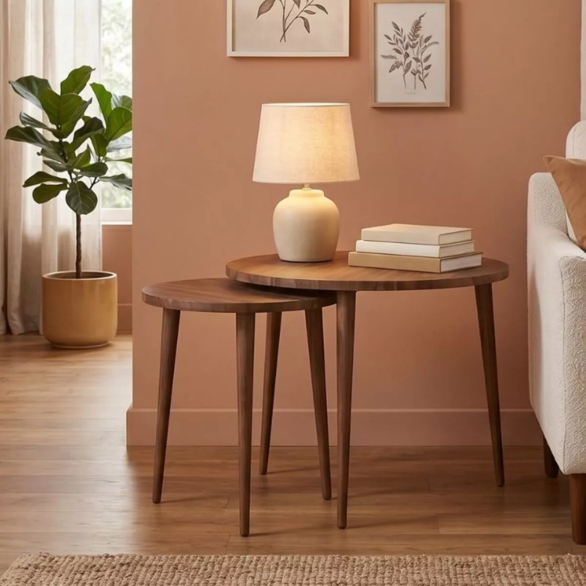 Τραπεζάκι σαλονιού σετ 2 τμχ Nola Megapap χρώμα καρυδί Ø60x46εκ.