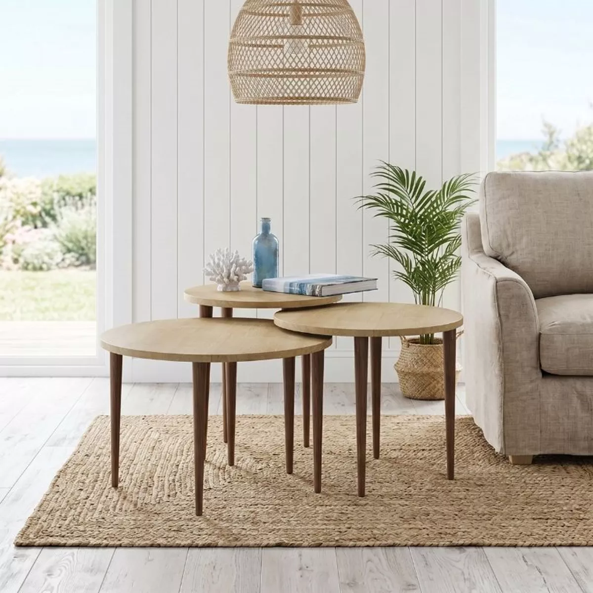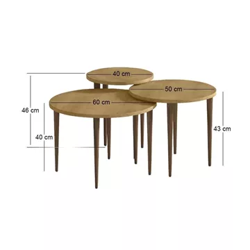 Τραπεζάκι σαλονιού σετ 3 τμχ Nola Megapap χρώμα sapphire oak Ø60x46εκ.