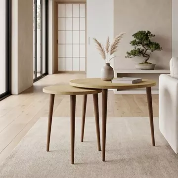 Τραπεζάκι σαλονιού σετ 2 τμχ Nola Megapap χρώμα sapphire oak Ø60x46εκ.