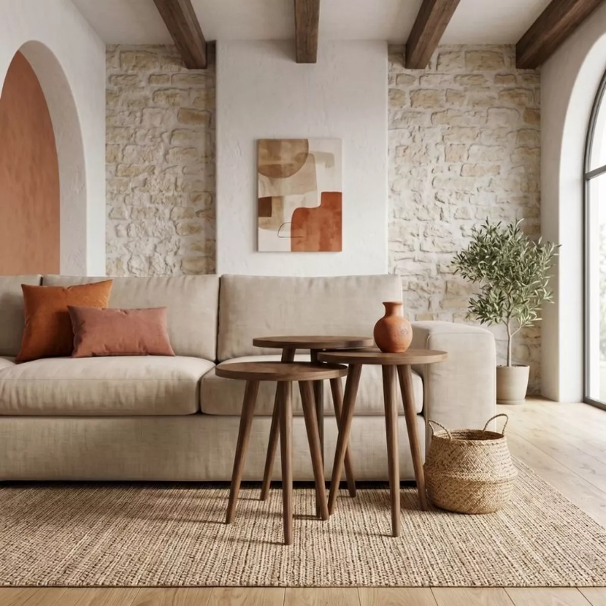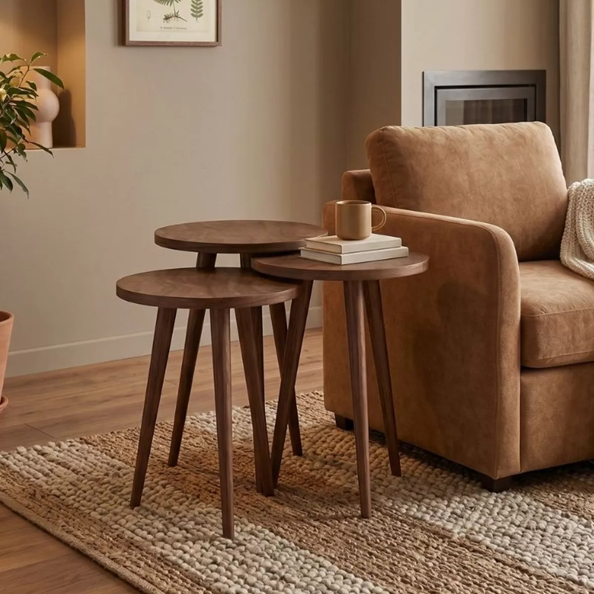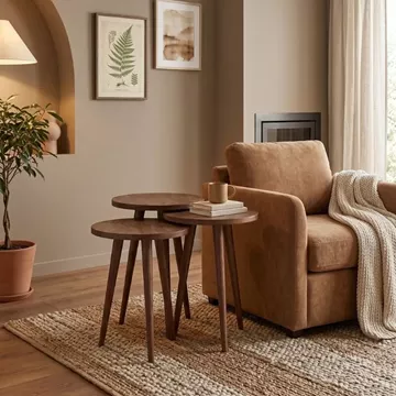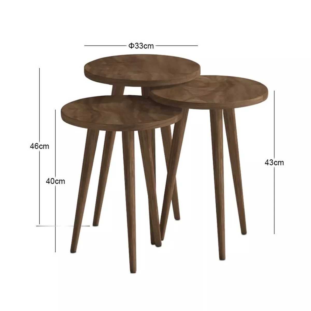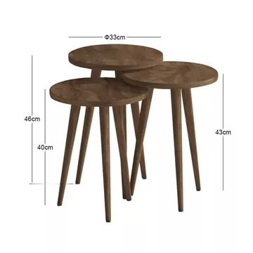 Τραπεζάκι βοηθητικό σετ 3 τμχ Cruz Megapap χρώμα καρυδί Ø33x46εκ.