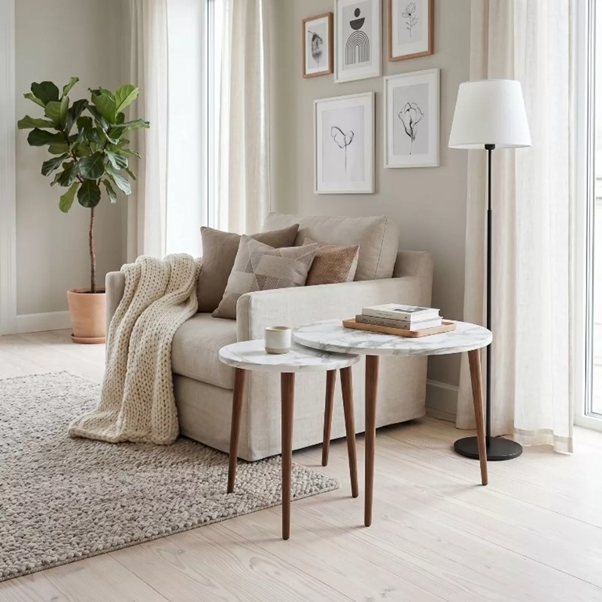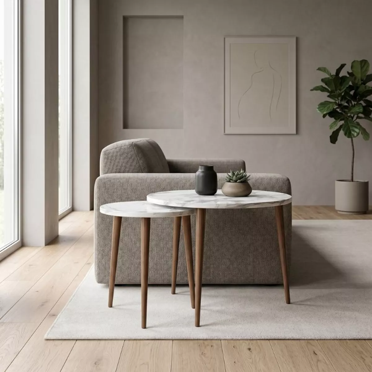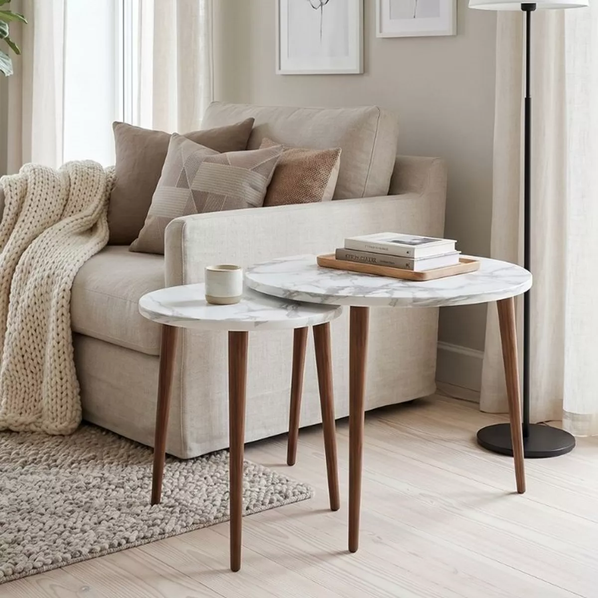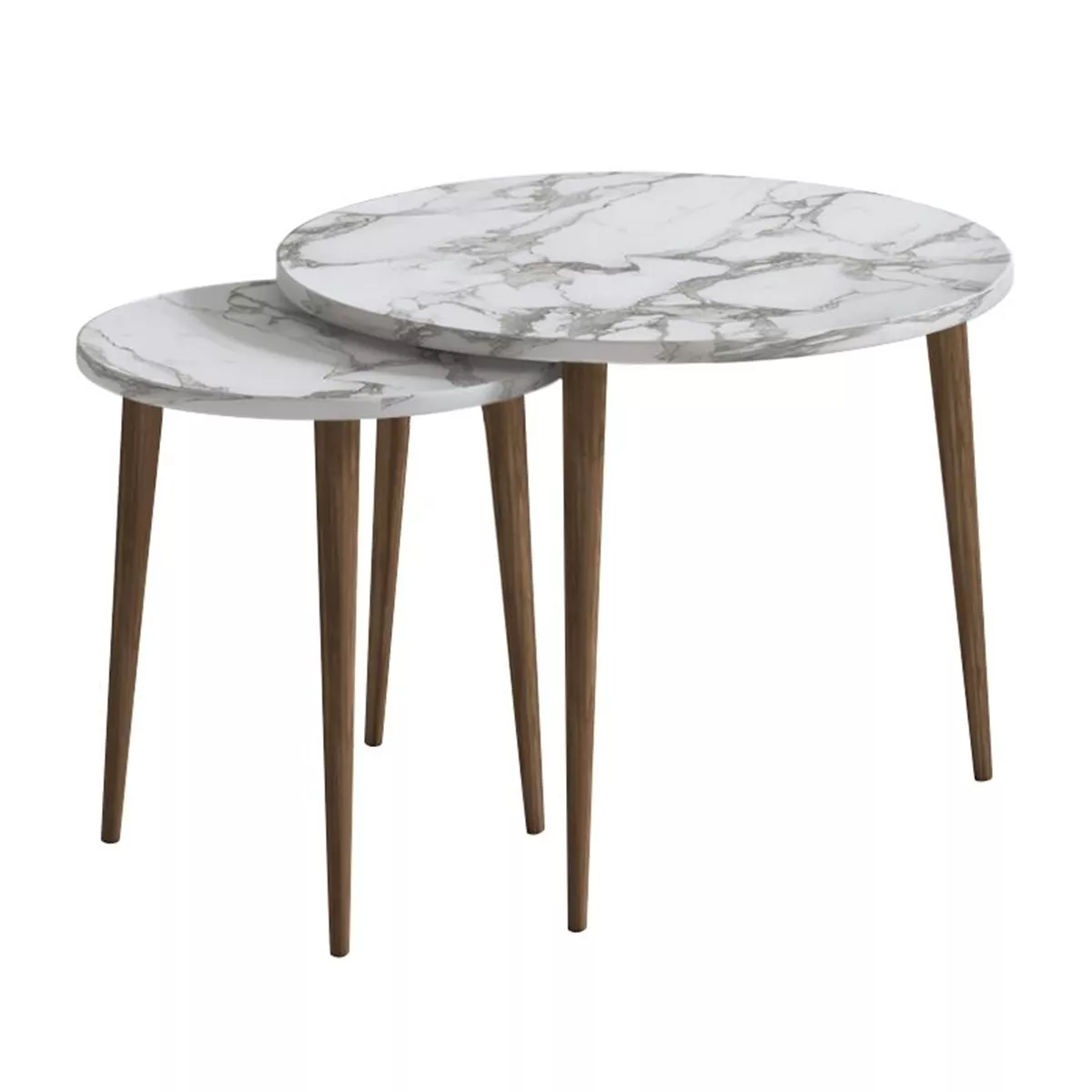 Τραπεζάκι σαλονιού σετ 2 τμχ Nola Megapap χρώμα λευκό εφέ μαρμάρου Ø60x46εκ.
