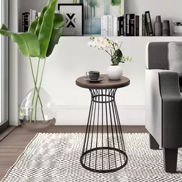 Βοηθητικό τραπεζάκι Tekosi Megapap μεταλλικό - Mdf χρώμα μαύρο - καρυδί 35x35x58εκ.
