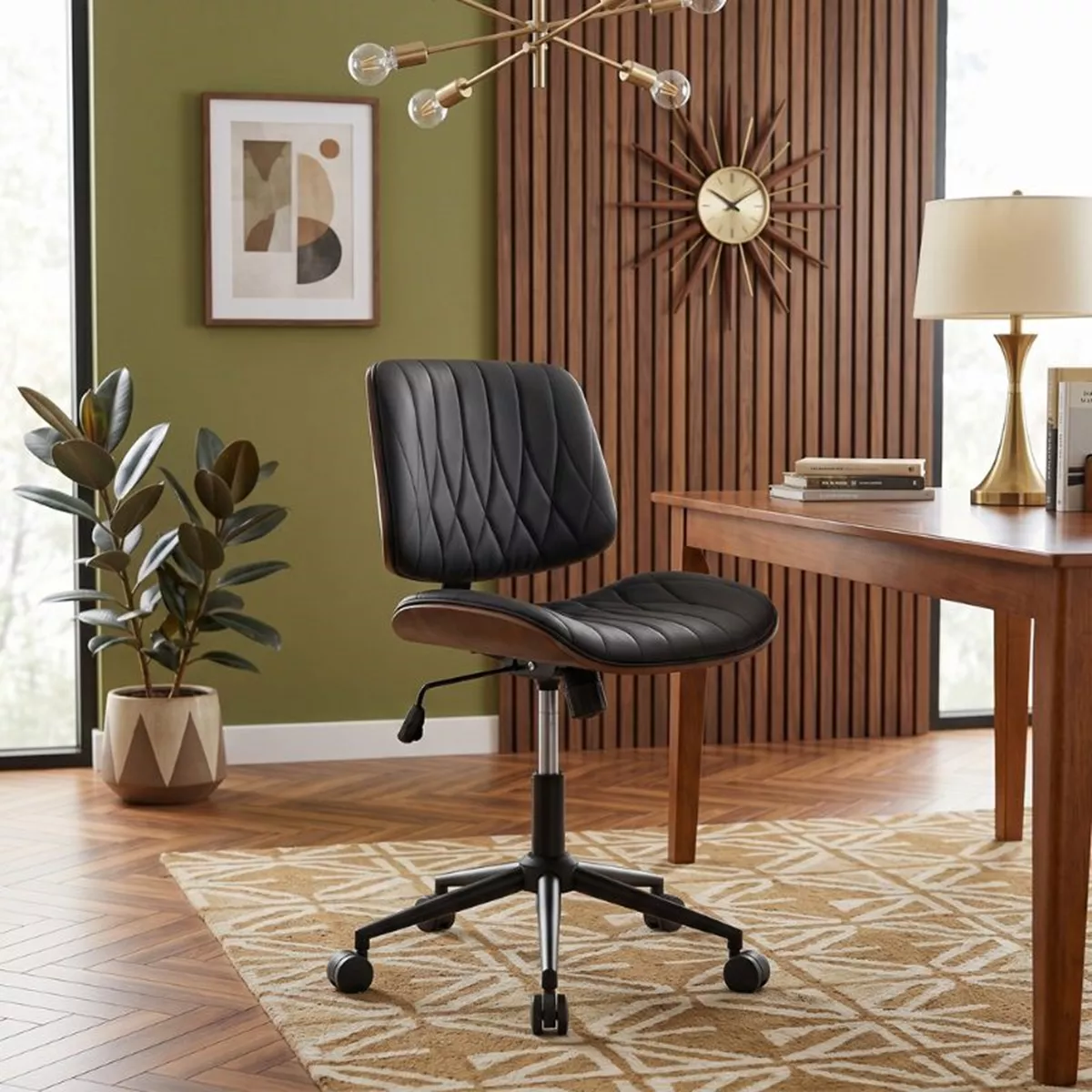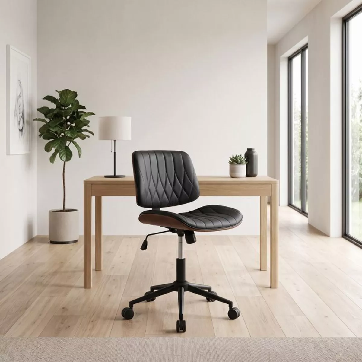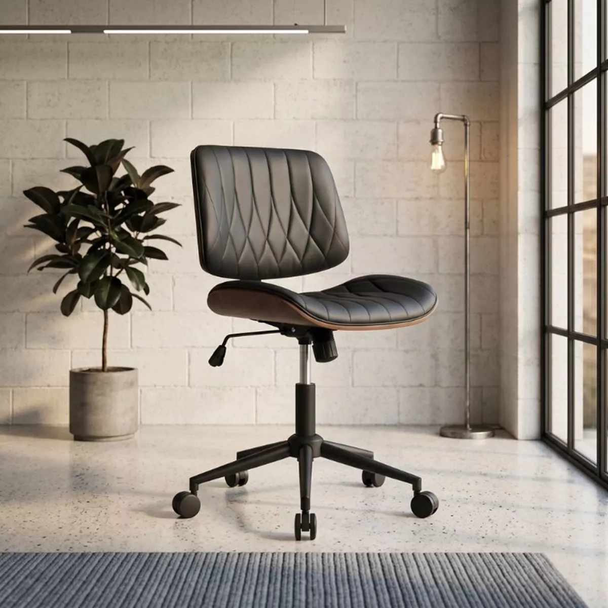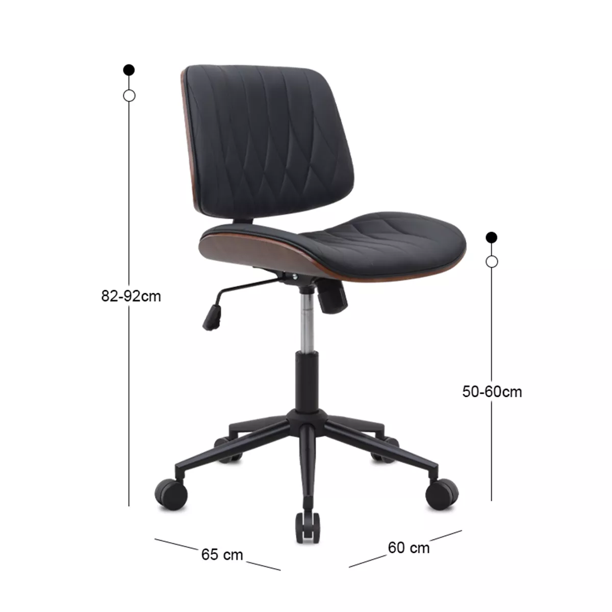 Καρέκλα γραφείου Corina Megapap από τεχνόδερμα χρώμα μαύρο 60x65x82/92εκ.