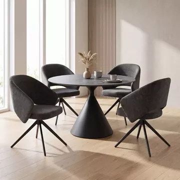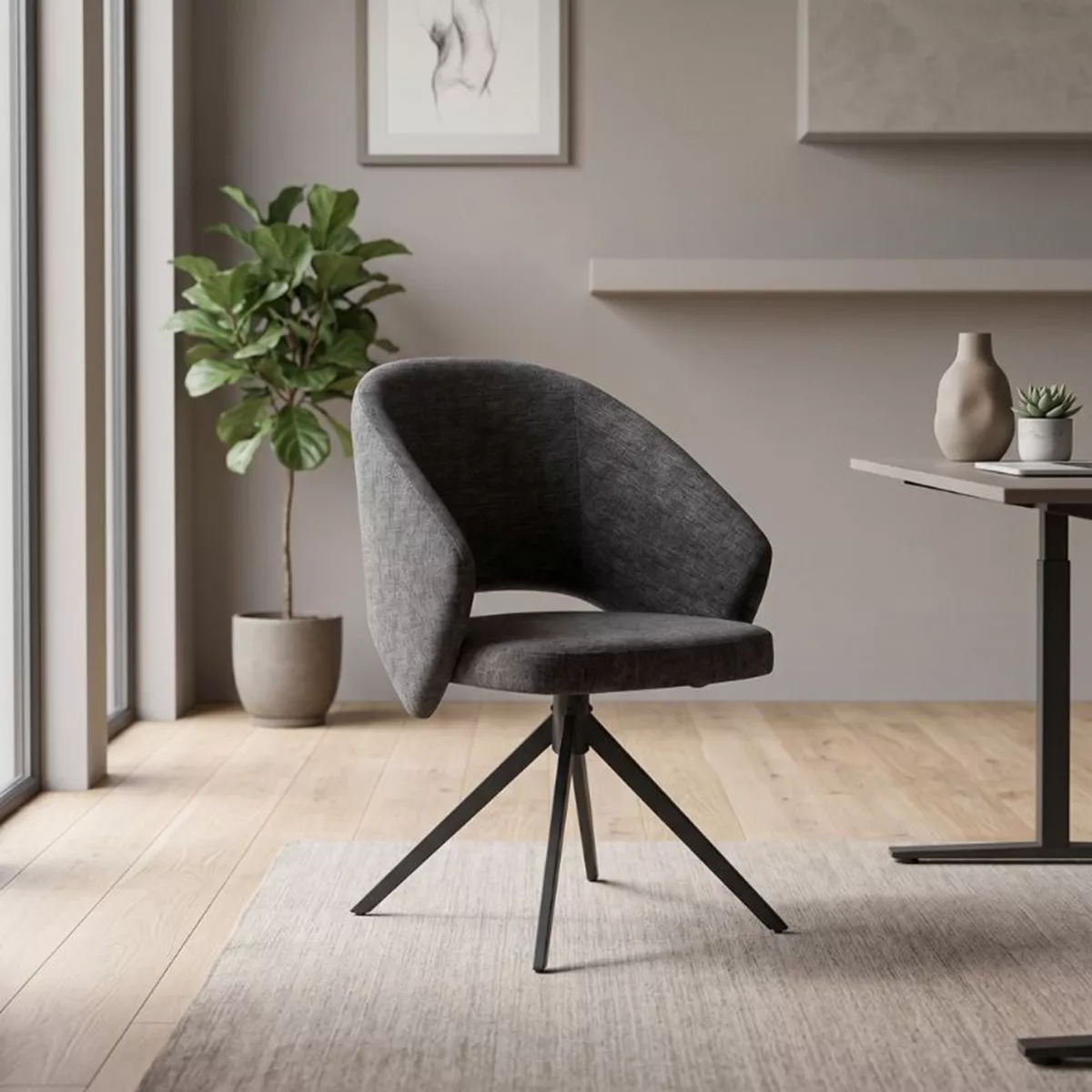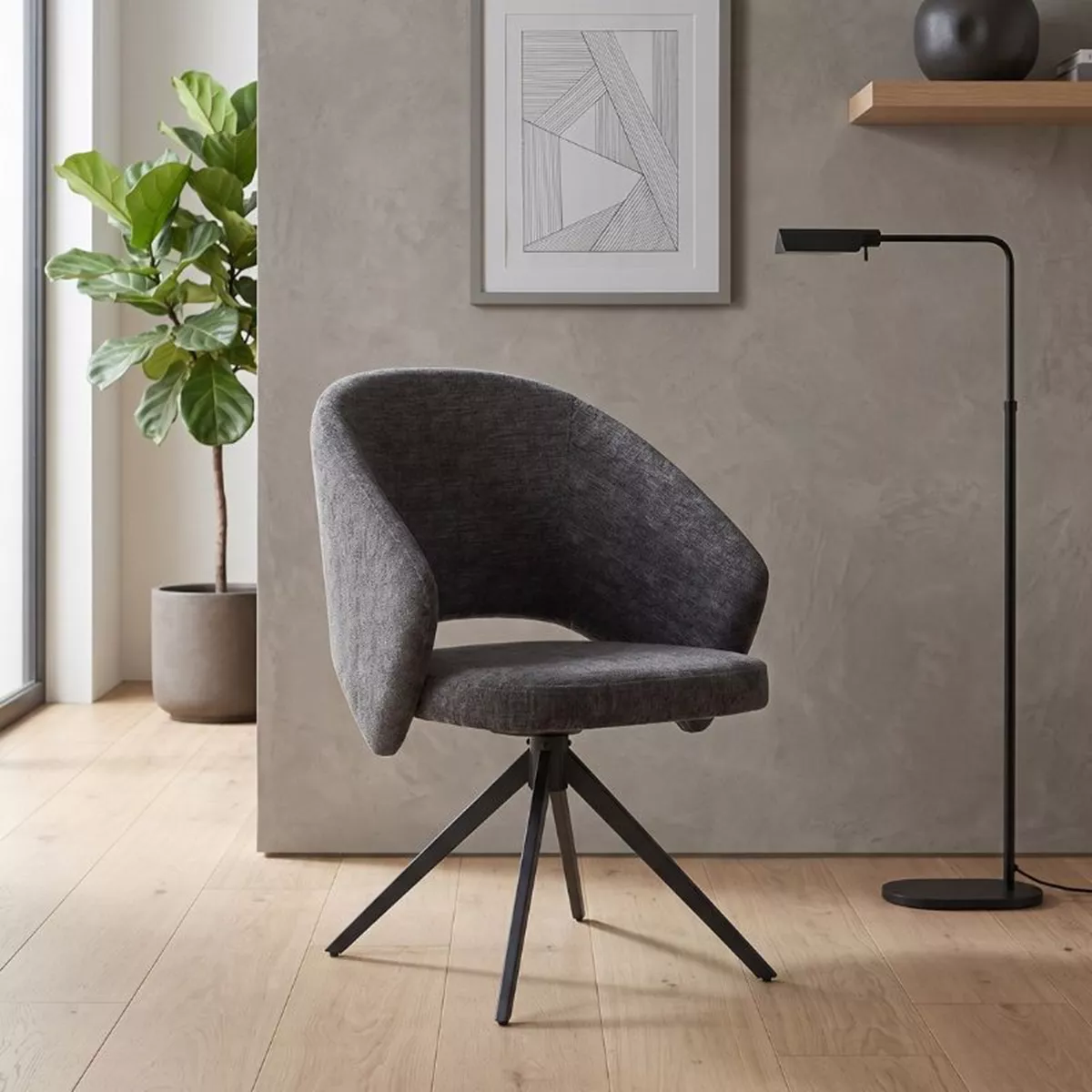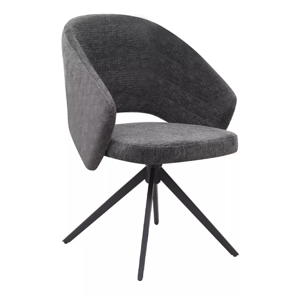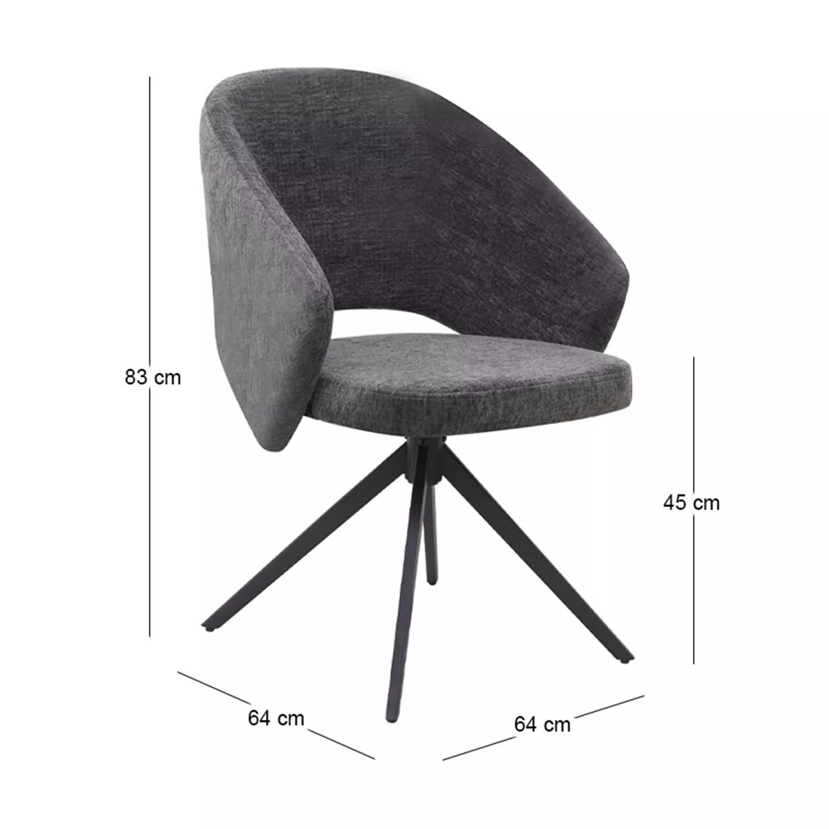 Πολυθρόνα τραπεζαρίας Milano Megapap περιστρεφόμενη χρώμα ανθρακί ύφασμα - μεταλλικό μαύρο πόδι 64x64x83εκ.