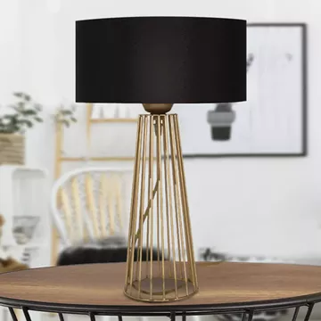 Φωτιστικό επιτραπέζιο Filip Megapap E27 μεταλλικό - υφασμάτινο χρώμα χρυσό - μαύρο 25x25x45εκ.