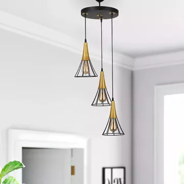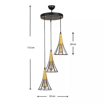 Φωτιστικό οροφής Havana Megapap E27 μεταλλικό τρίφωτο χρώμα μαύρο - χρυσό 30x30x112εκ.