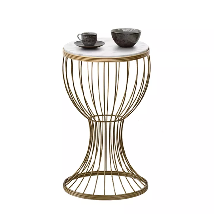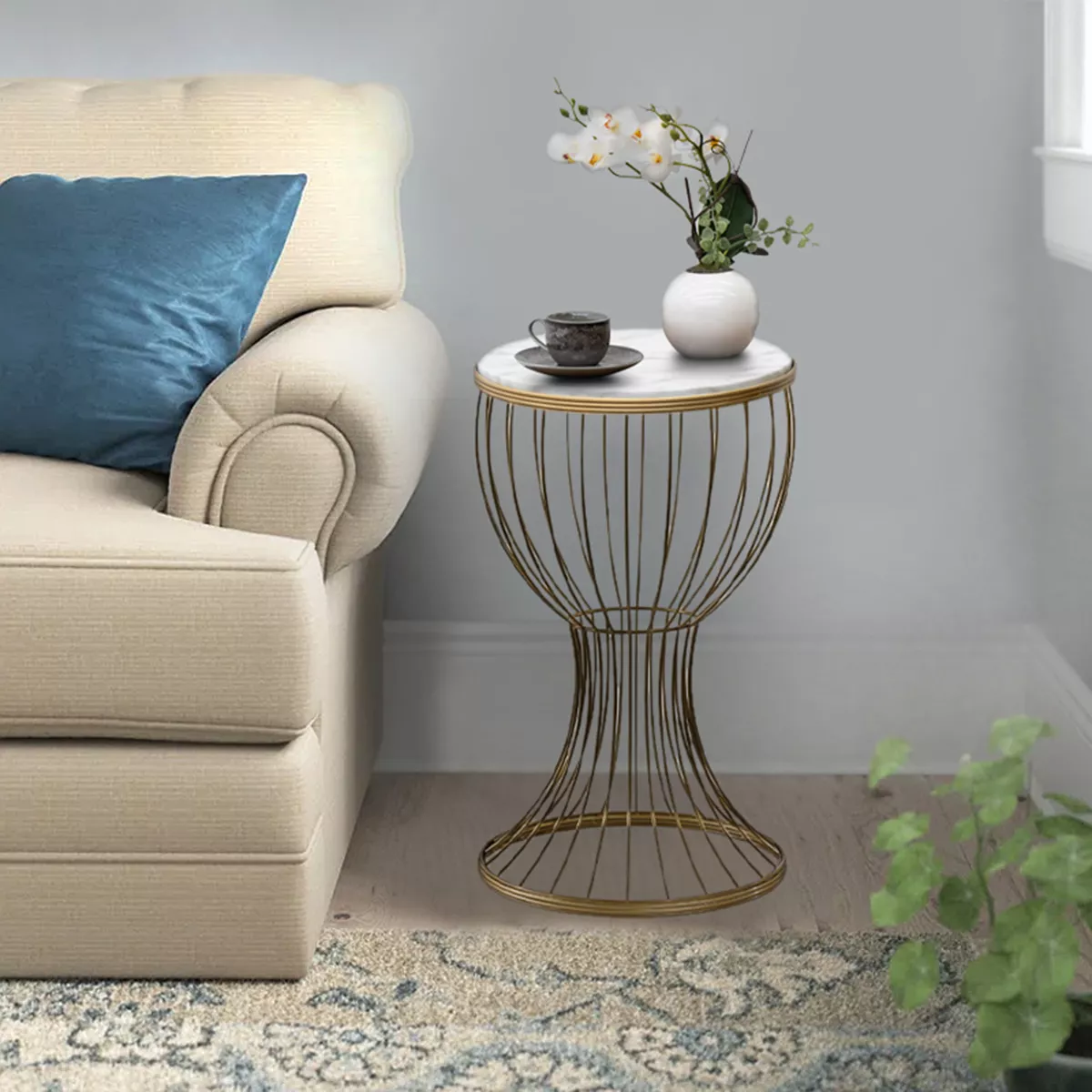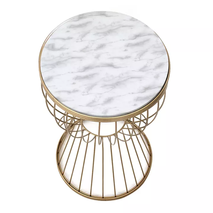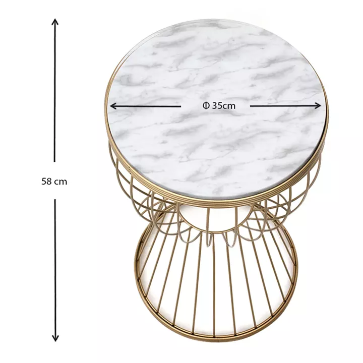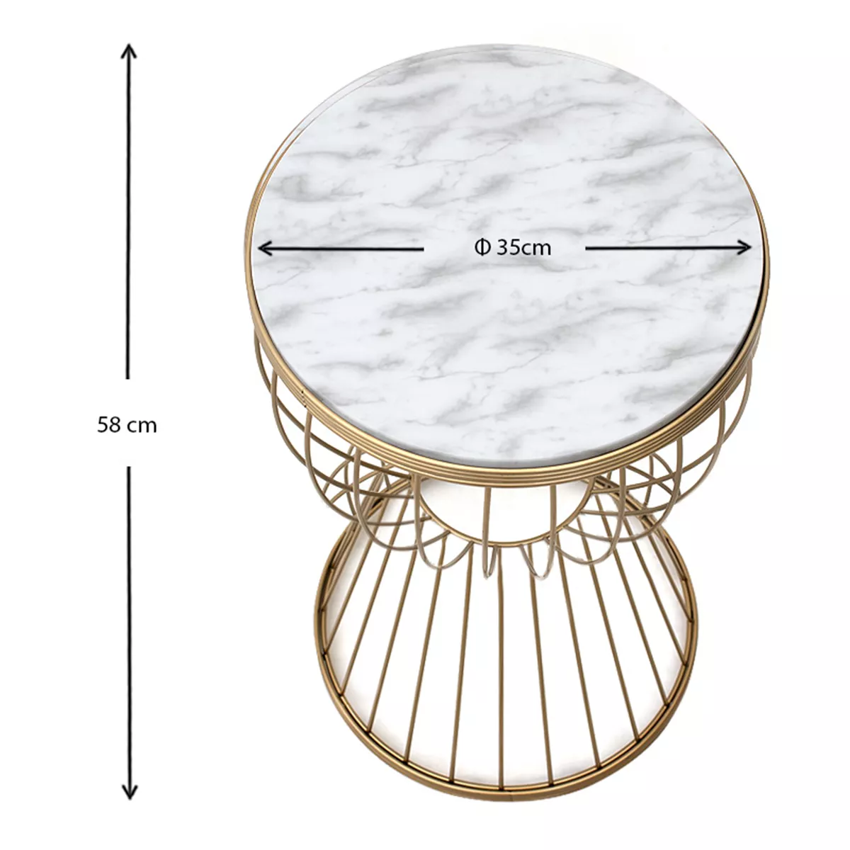Βοηθητικό τραπεζάκι Aldora Megapap μεταλλικό - Mdf χρώμα χρυσό - λευκό εφέ μαρμάρου 35x35x58εκ.