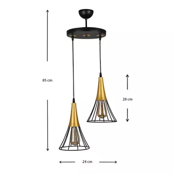 Φωτιστικό οροφής Havana Megapap E27 μεταλλικό δίφωτο χρώμα μαύρο - χρυσό 24x24x85εκ.