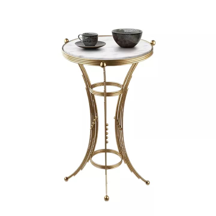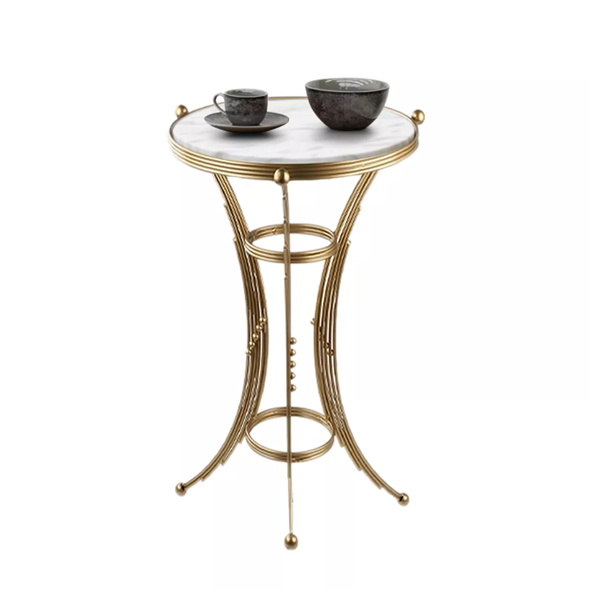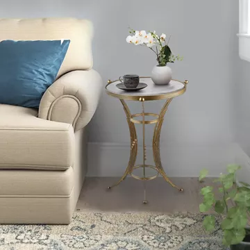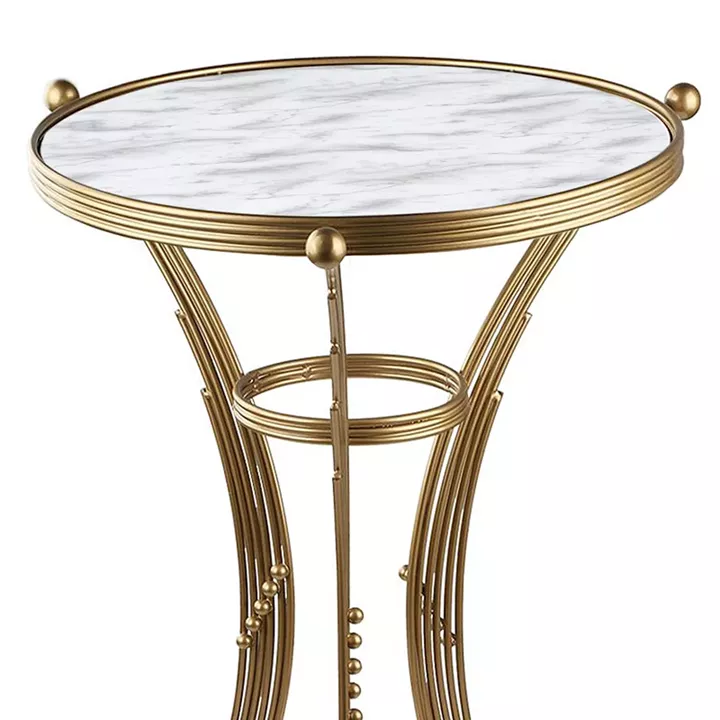 Βοηθητικό τραπεζάκι Venezia Megapap μεταλλικό - Mdf χρώμα χρυσό - λευκό εφέ μαρμάρου 35x35x59εκ.