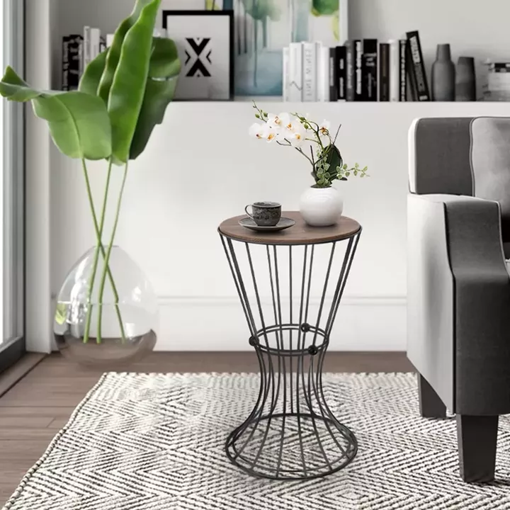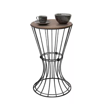 Βοηθητικό τραπεζάκι Girene Megapap μεταλλικό - Mdf χρώμα μαύρο - καρυδί 32x32x58εκ.